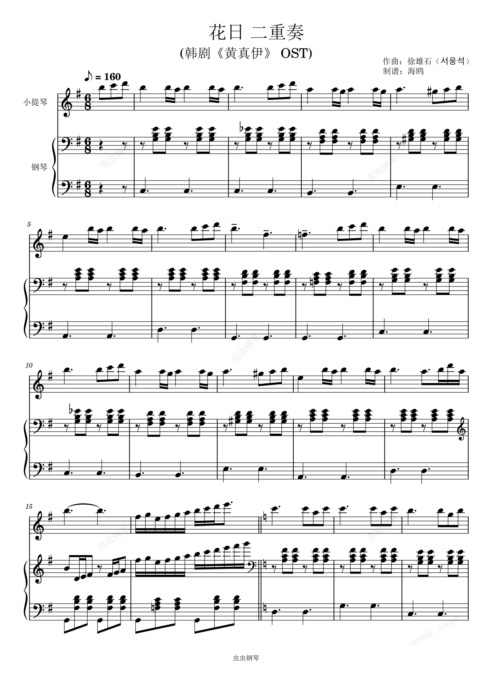 钢琴谱:花日 二重奏 钢琴&小提琴(韩剧《黄真伊》 OST) 꽃날 황진이