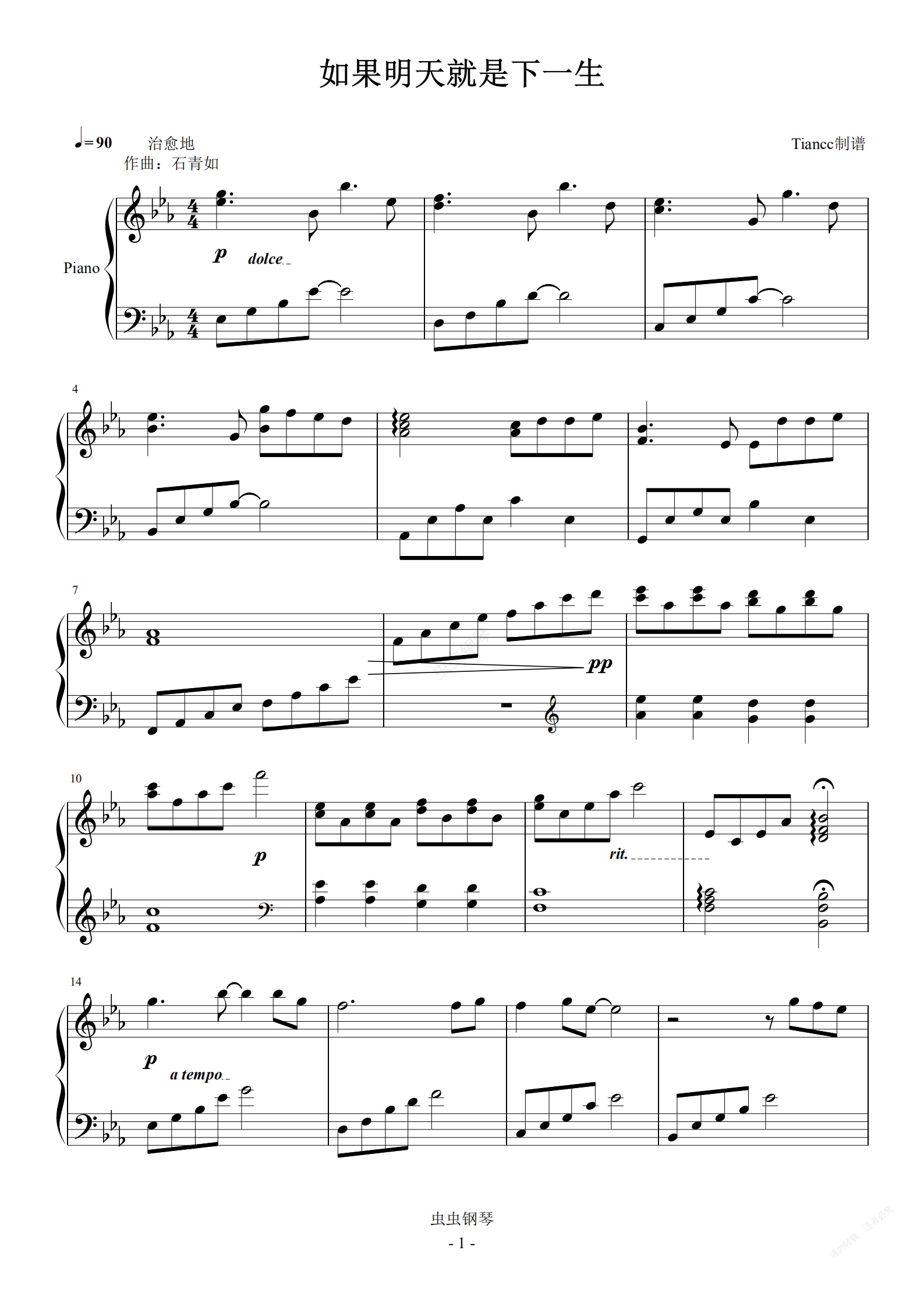 钢琴谱:《如果明天就是下一生》致东航,治愈受伤的心,849难度