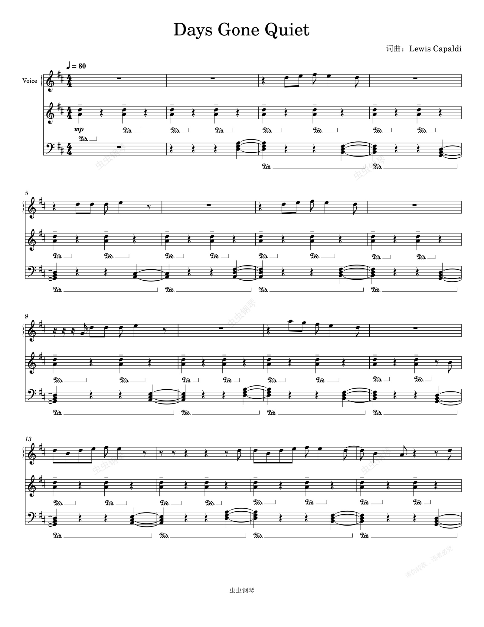 钢琴谱:Days Gone Quiet-Lewis Capaldi