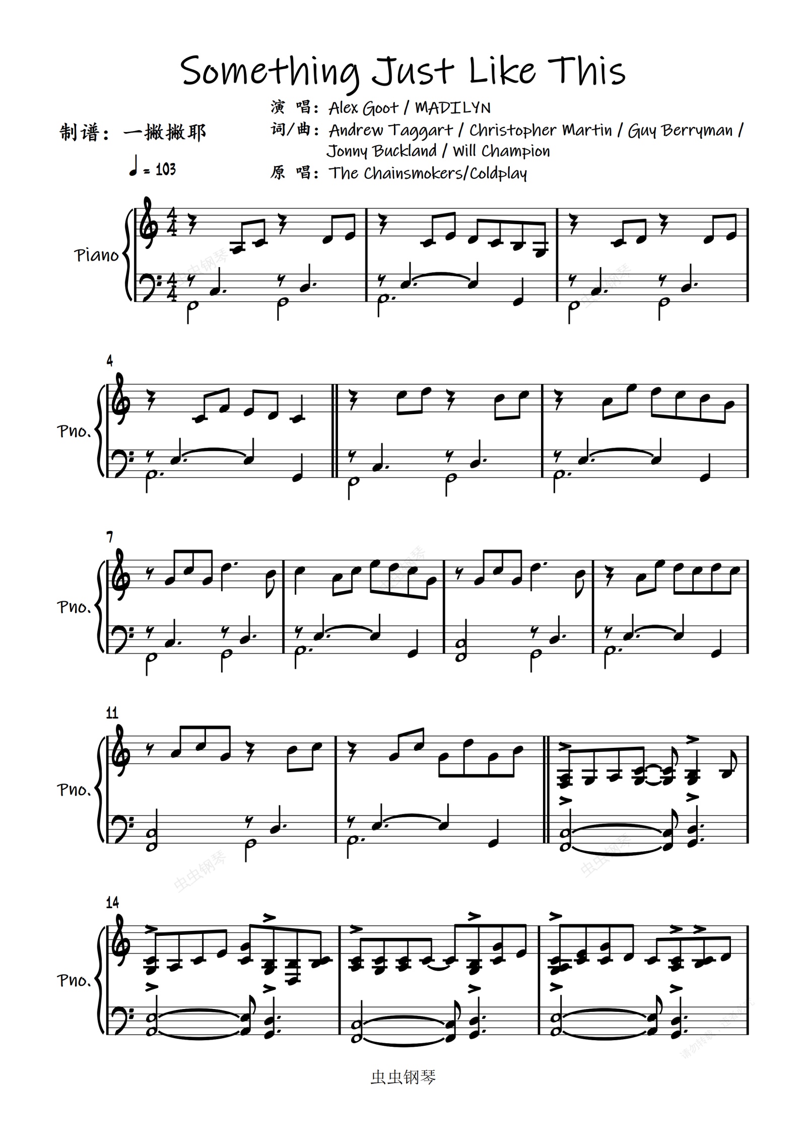 钢琴谱:【女版弹唱】Something Just Like This-MADILYN/Alex Goot「一撇撇耶」