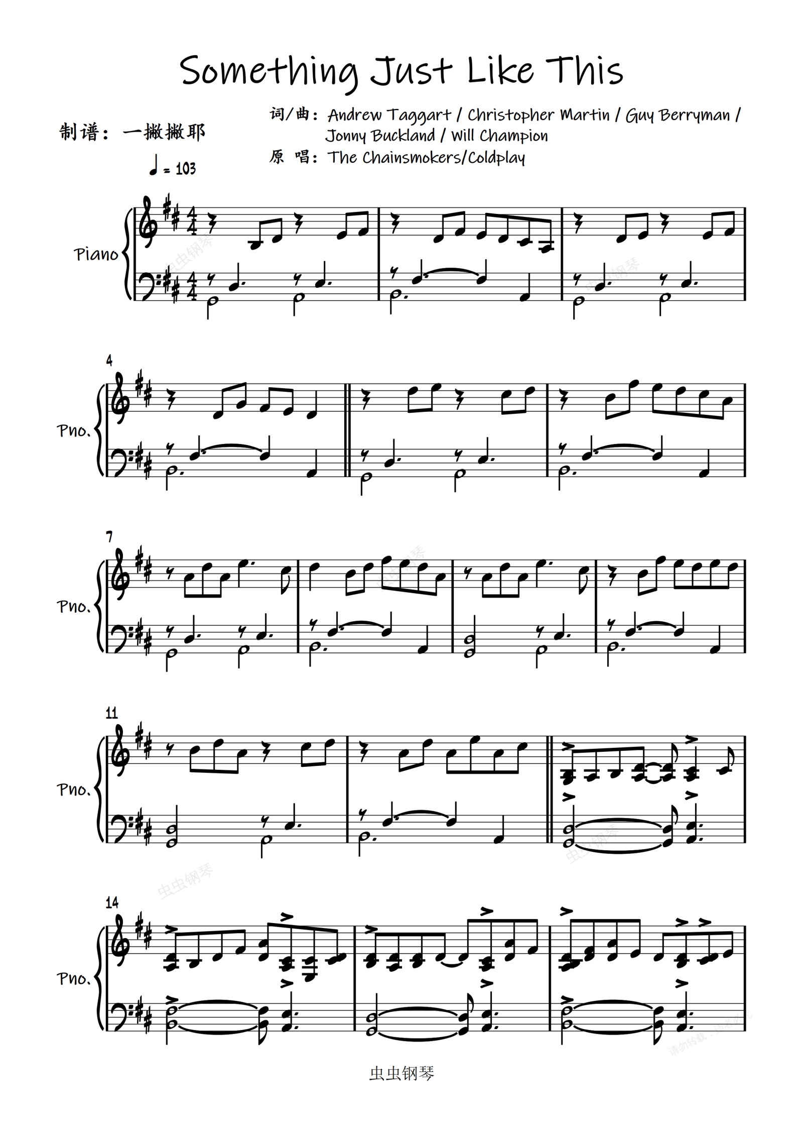钢琴谱:【完美伴奏】Something Just Like This-The Chainsmokers / Coldplay