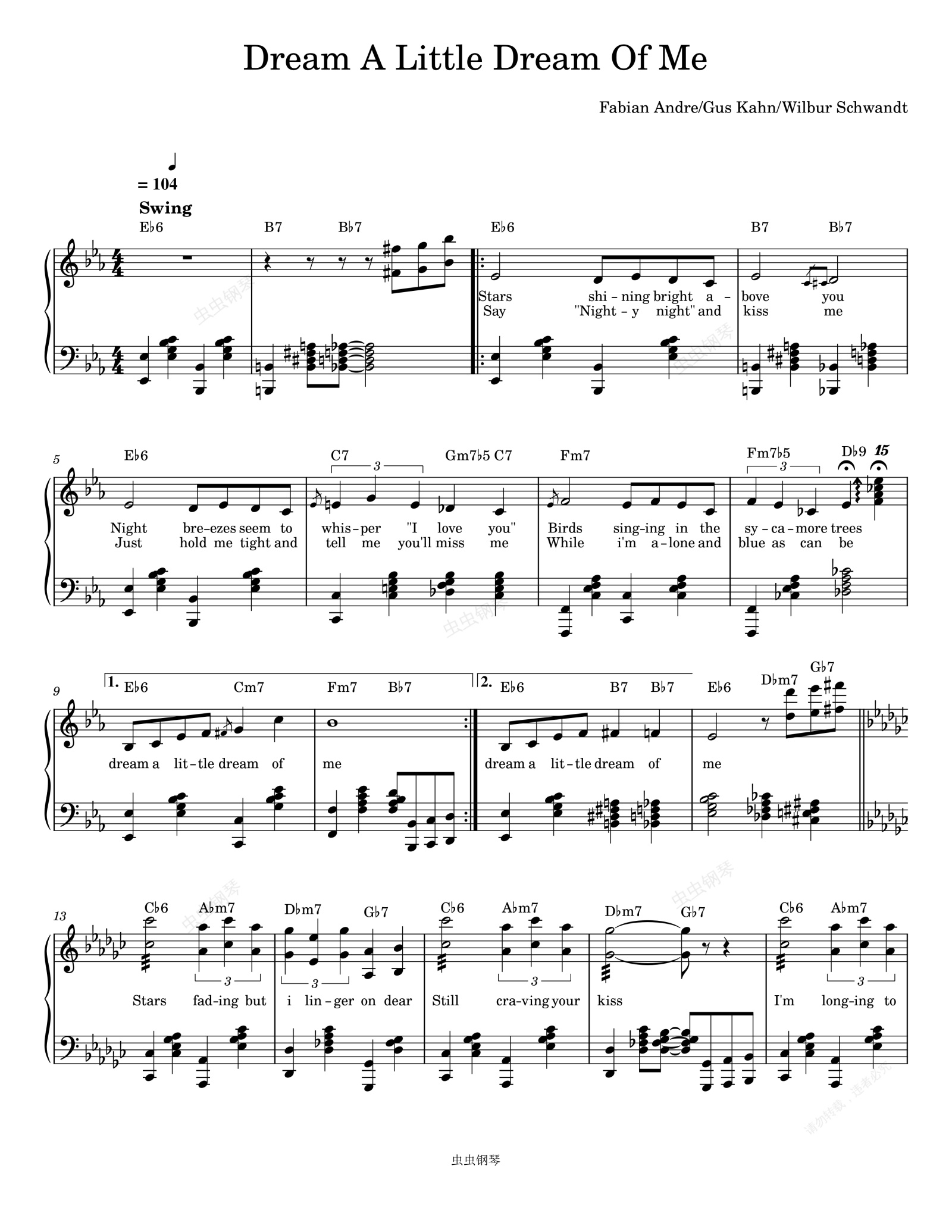 钢琴谱:Dream A Little Dream Of Me-Michael Bublé