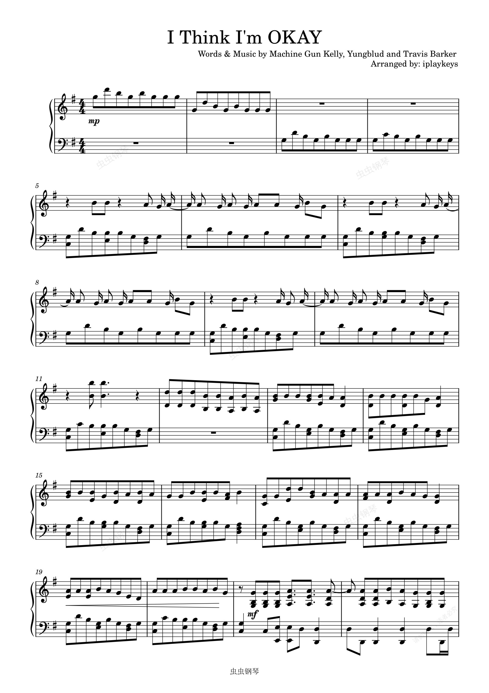 钢琴谱:I Think I'm OKAY-Machine Gun Kelly / Yungblud / Travis Barker