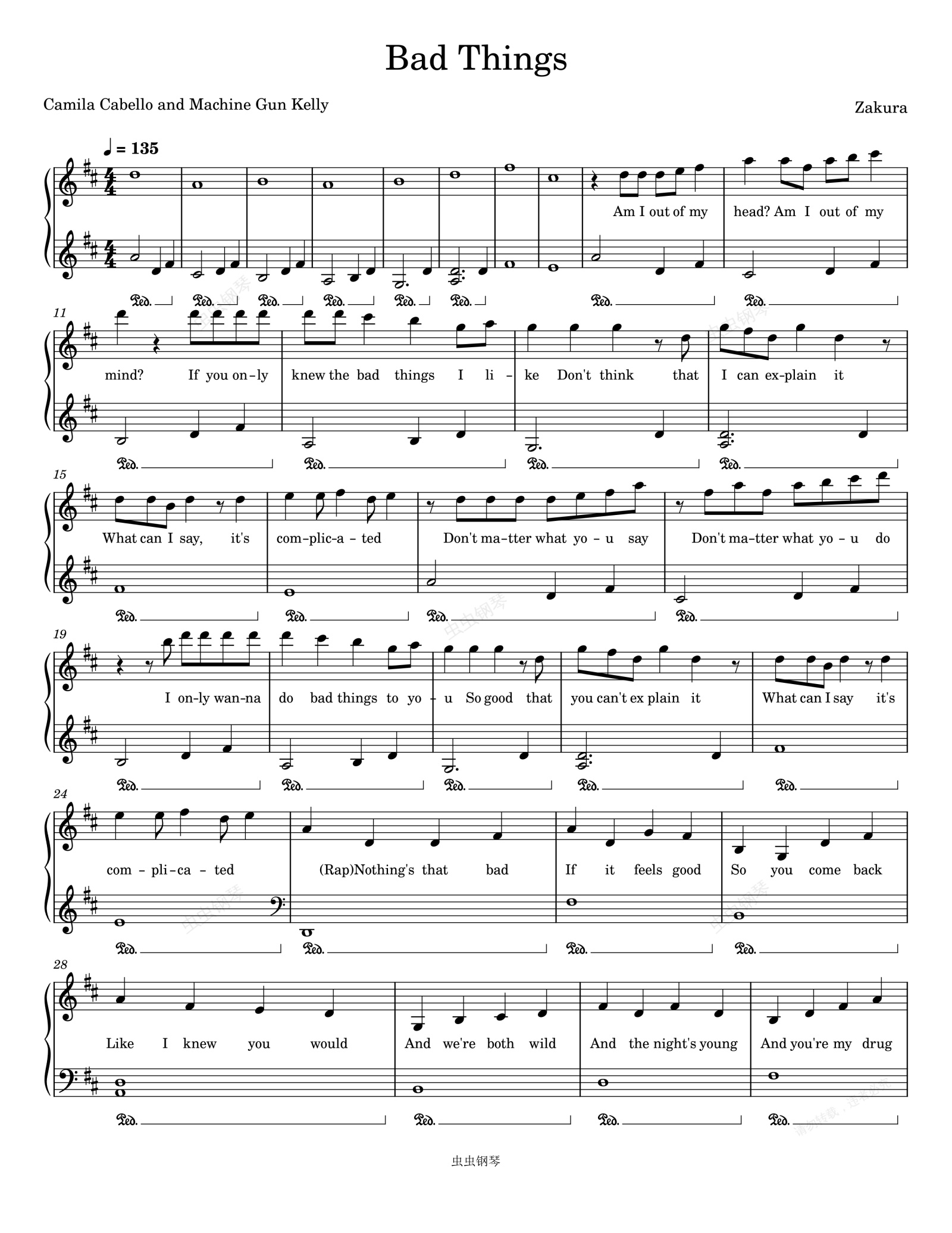 钢琴谱:Bad Things-Machine Gun Kelly / Camila Cabello