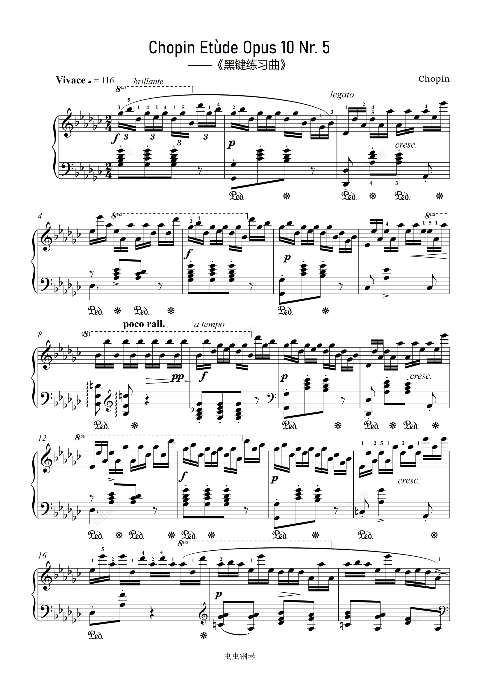钢琴谱:肖邦练习曲 黑键练习曲 Op.10 No.5(高还原版 带指法)