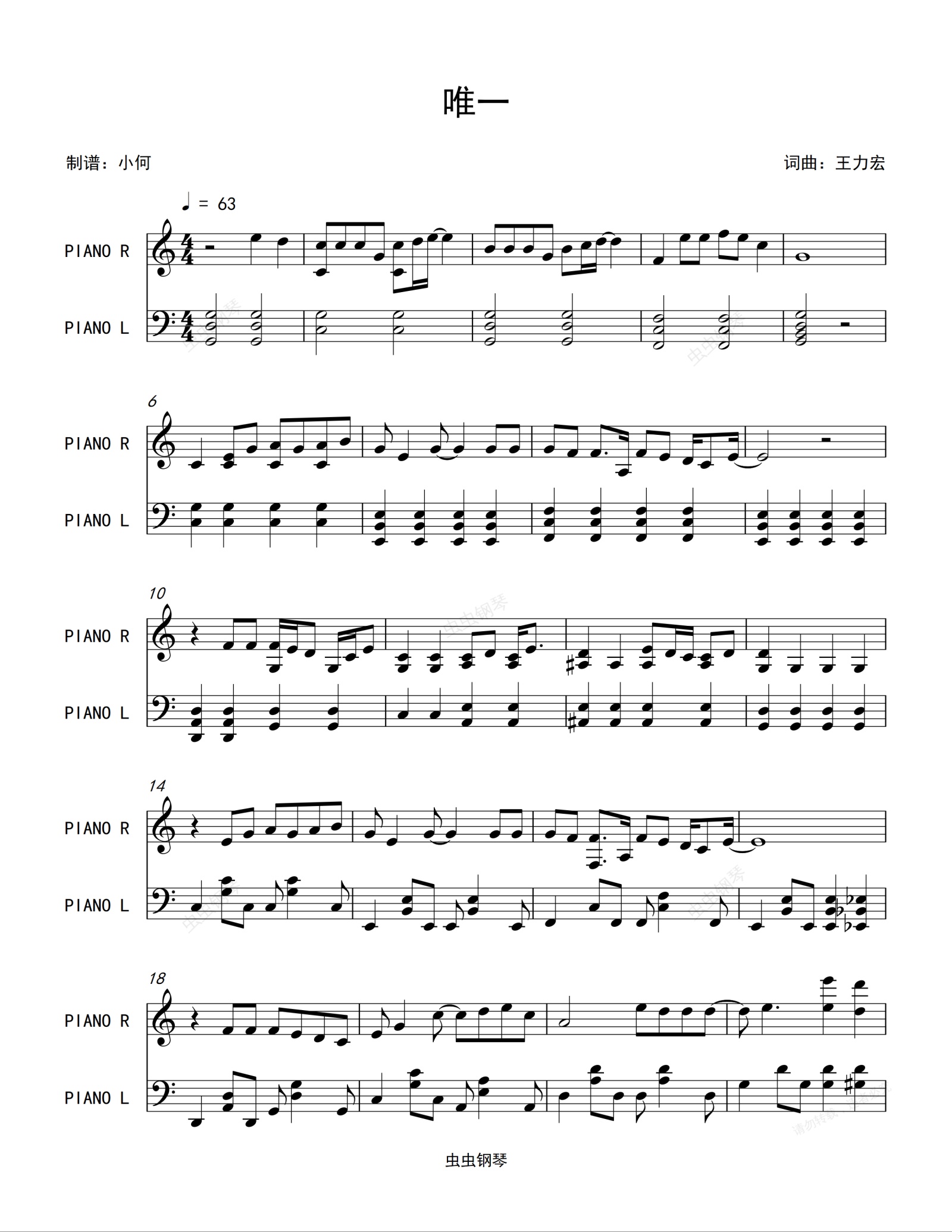钢琴谱:唯一-王力宏-原版