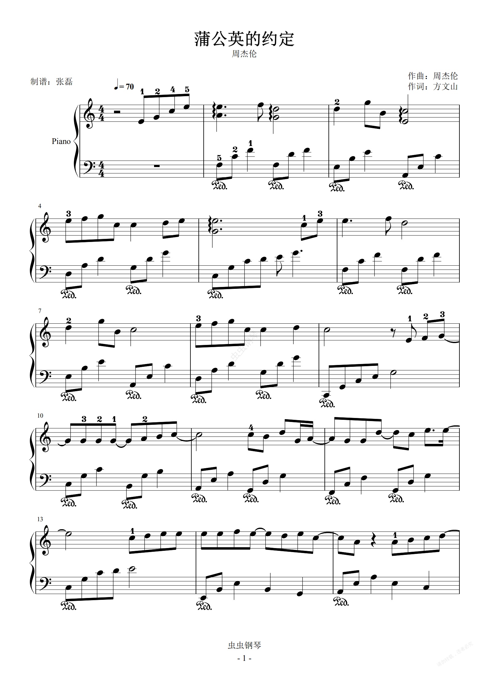 钢琴谱:蒲公英的约定--周杰伦