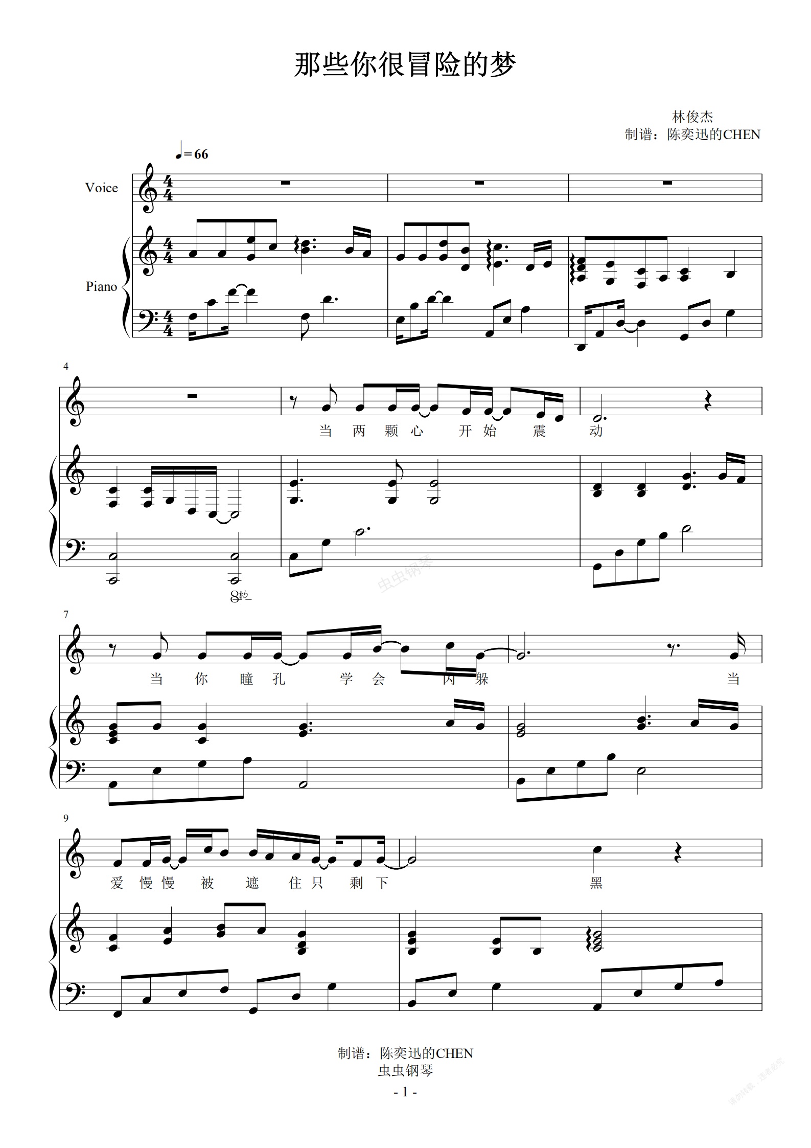 钢琴谱:那些你很冒险的梦 C调完美弹唱谱【附歌词】