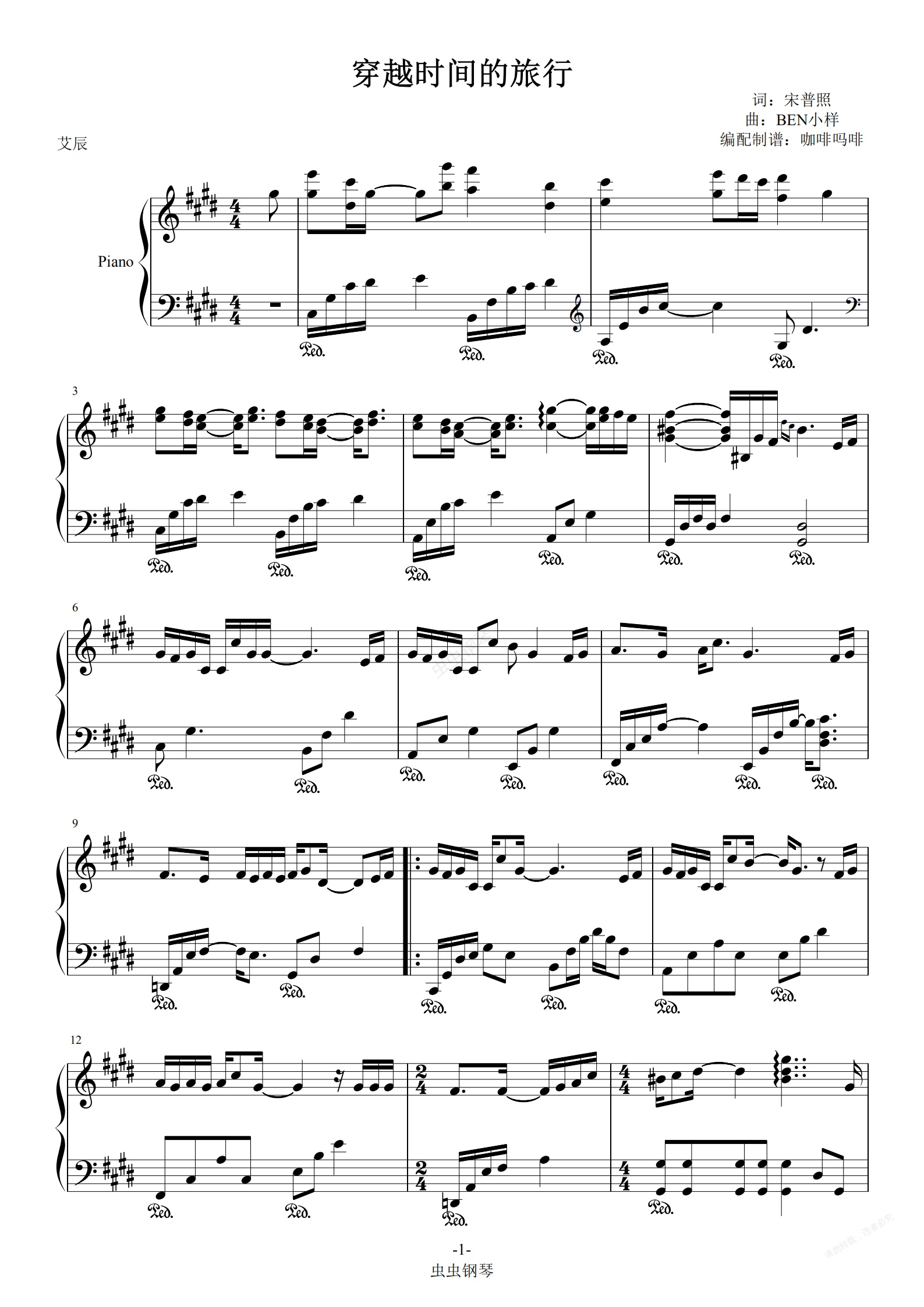 钢琴谱:穿越时间的旅行-艾辰 精编钢琴独奏谱