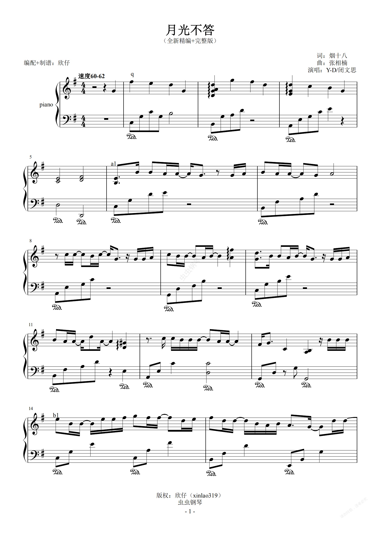 钢琴谱:Y-D/闭文思-G《月光不答》(全新精编+完整版)