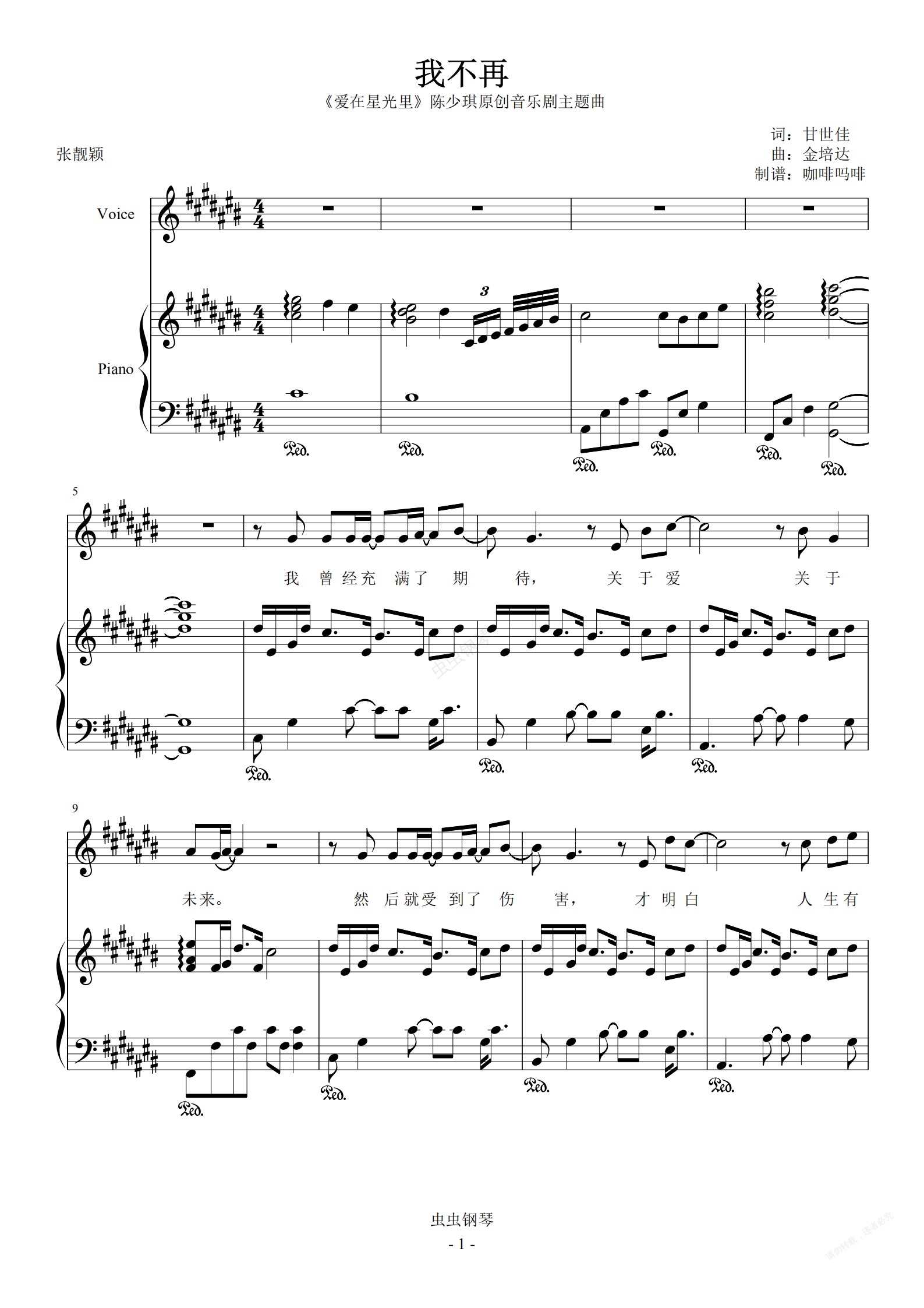 钢琴谱:我不再-张靓颖 钢琴伴奏谱
