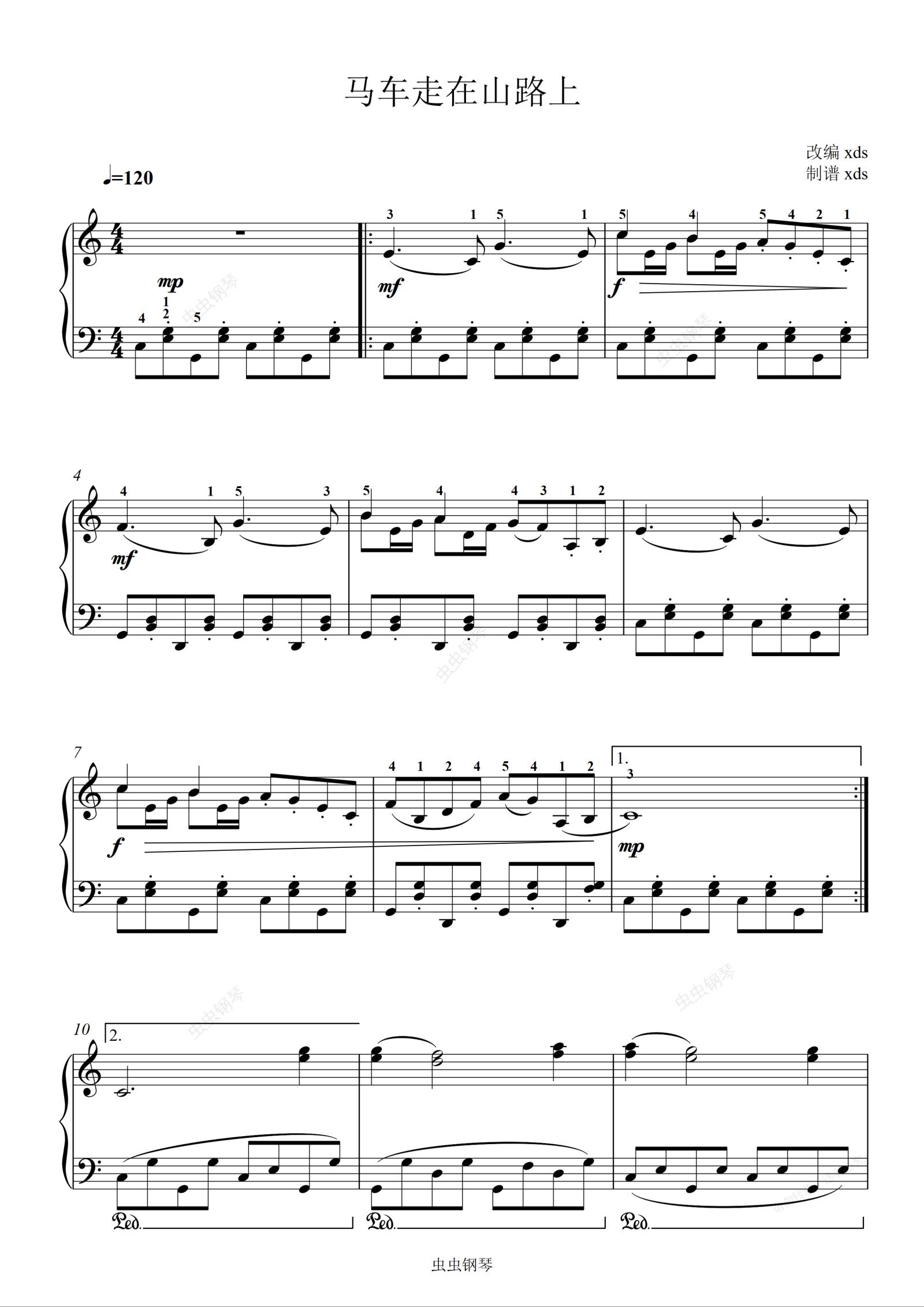 钢琴谱:马车走在山路上