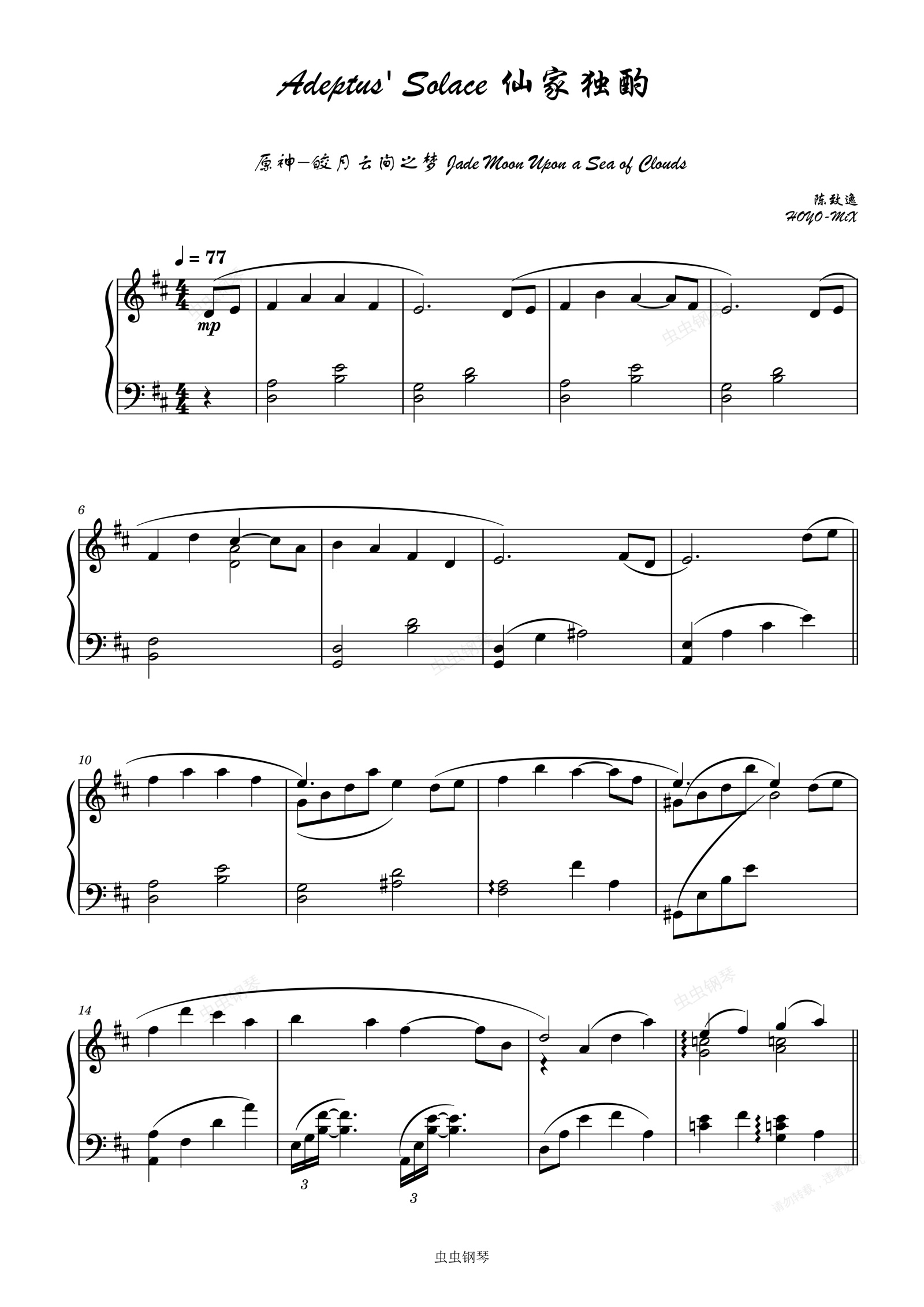 钢琴谱:Adeptus' Solace 仙家独酌《原神-皎月云间之梦 Jade Moon Upon a Sea of Clouds》