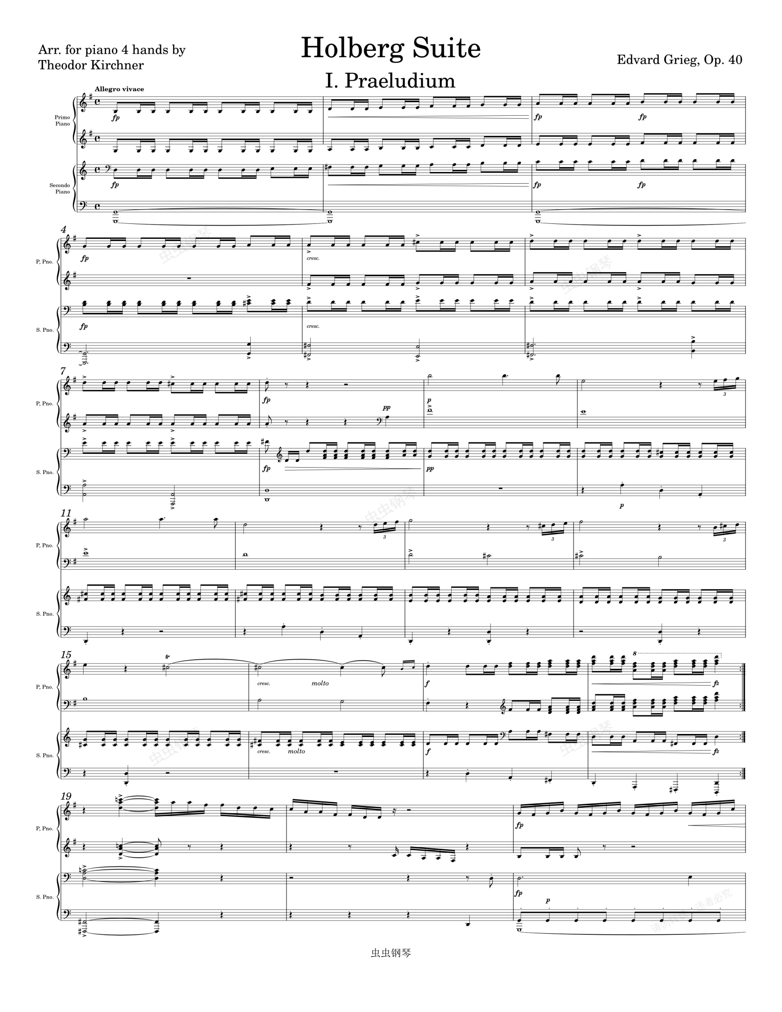 钢琴谱:Grieg Holberg Suite - I. Praeludium (Arr. for piano 4 hands)