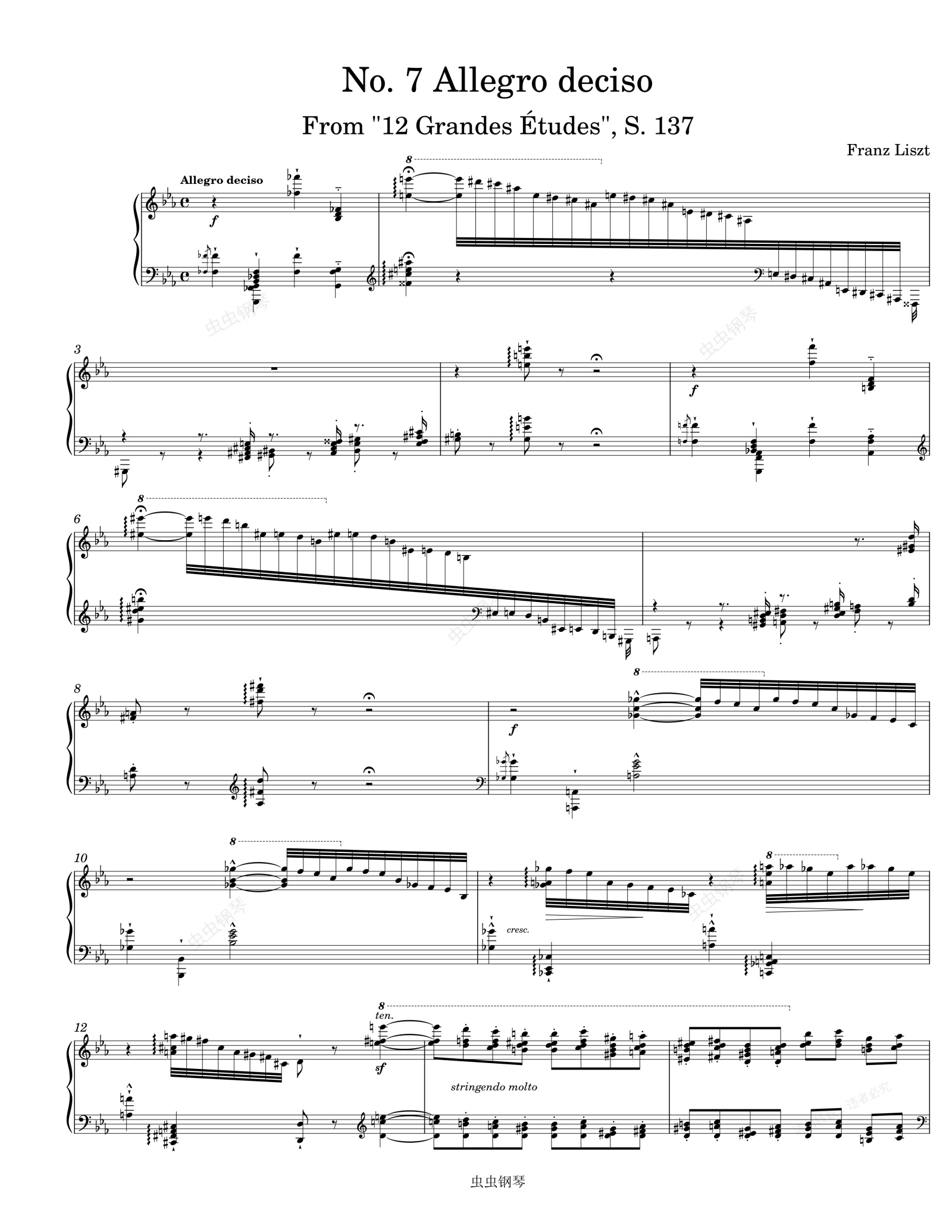 钢琴谱:Liszt 12 Grandes études, S.137 (No. 7)