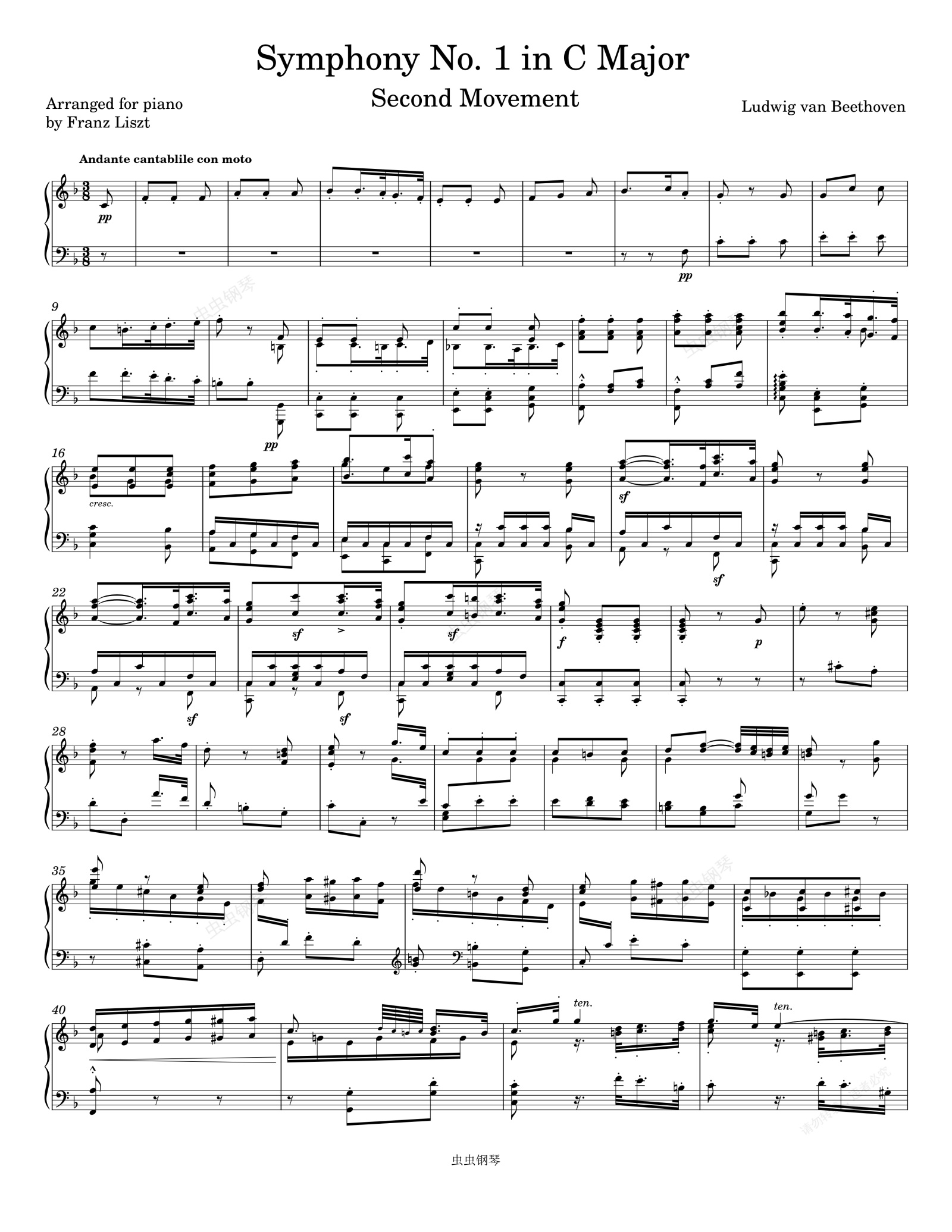 钢琴谱:Beethoven Symphony No. 1 (2nd movement) Piano solo