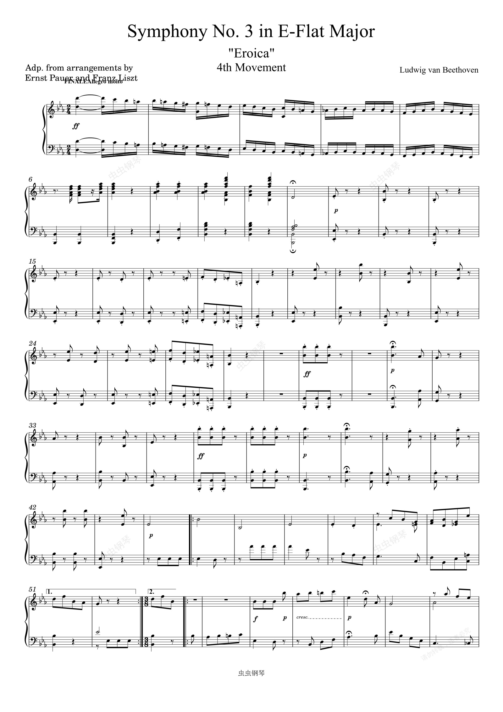 钢琴谱:Beethoven Symphony No. 3 Eroica, 4th Movement (Piano solo)