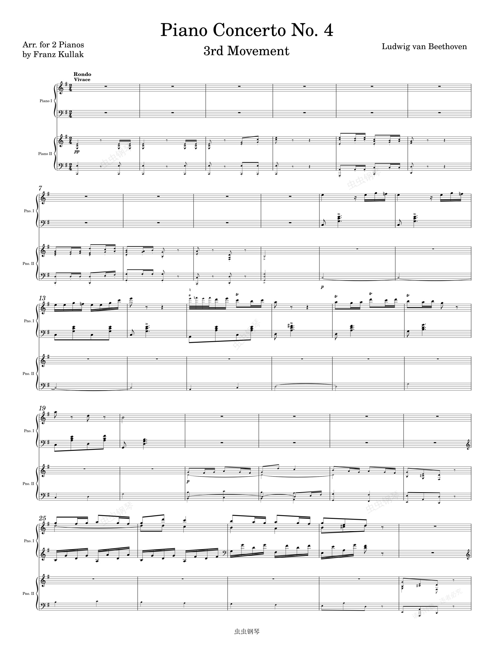 钢琴谱:Beethoven Piano Concerto No. 4, 3rd Mvmt (Arr. for 2 pianos)