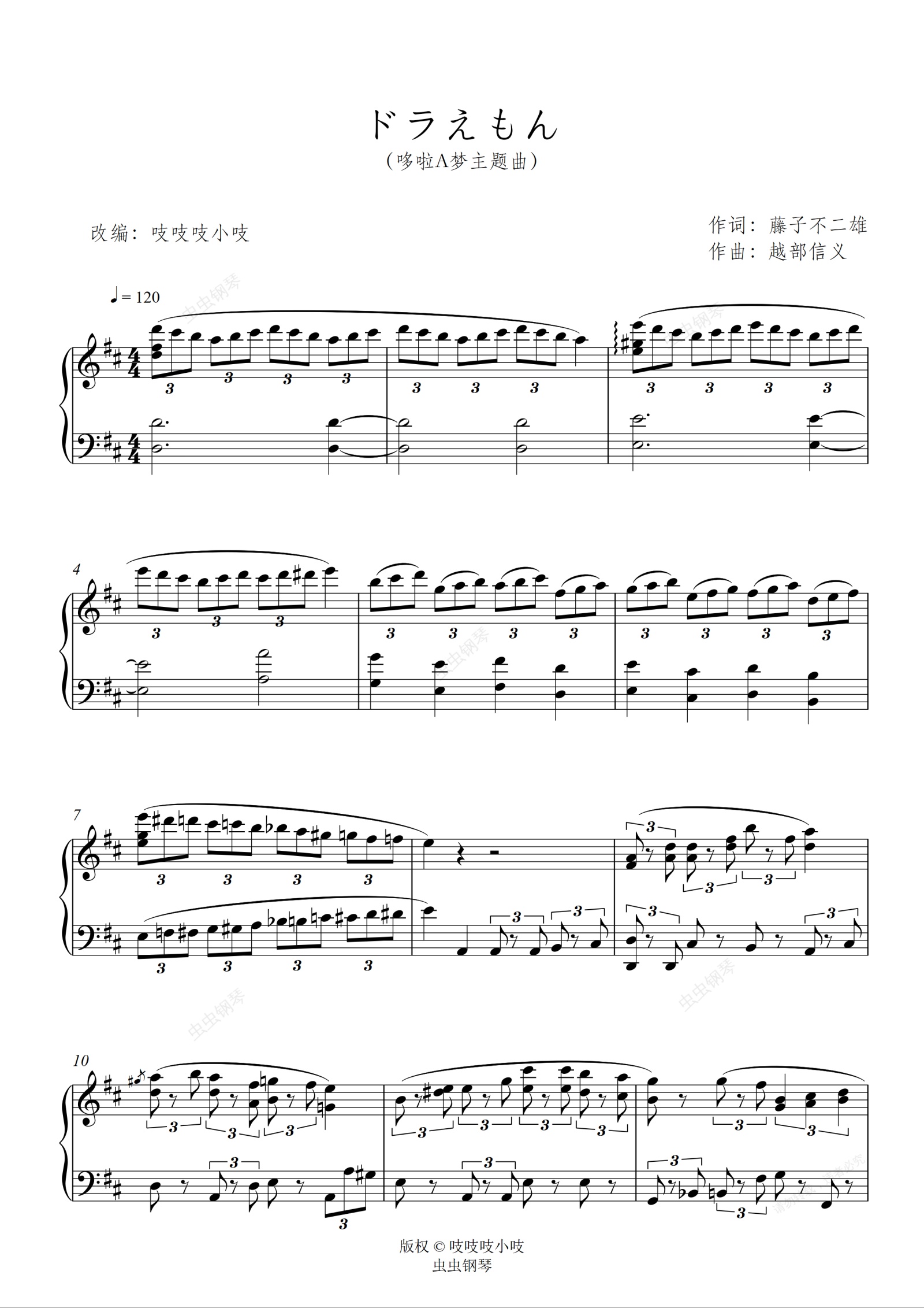 钢琴谱:哆啦A梦主题曲(小叮当,ドラえもん)