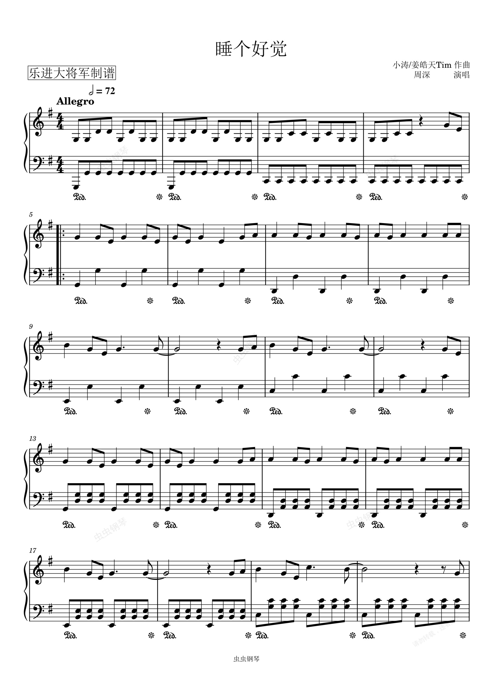 钢琴谱:睡个好觉 G调版