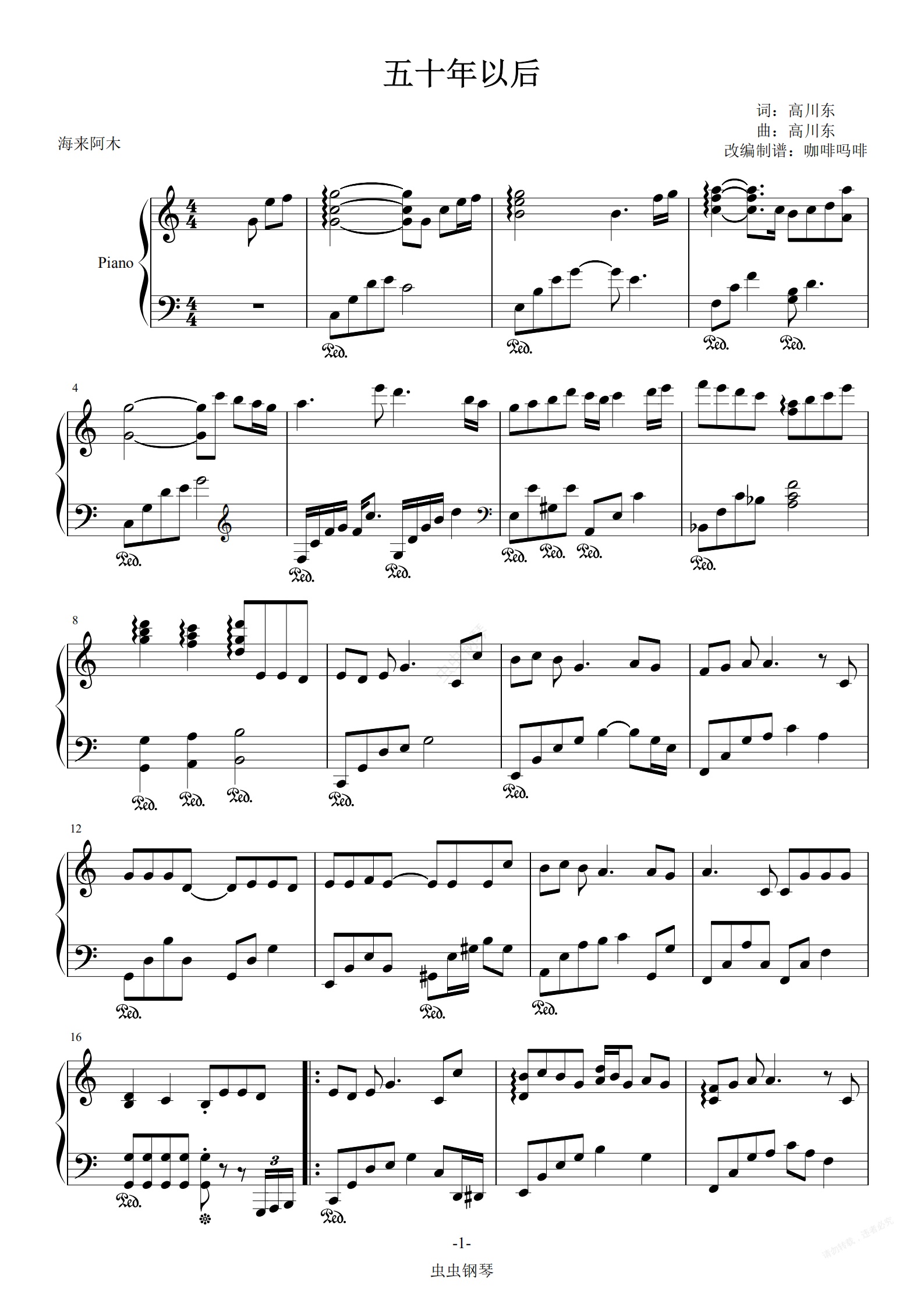 钢琴谱:五十年以后-海来阿木 钢琴独奏改编