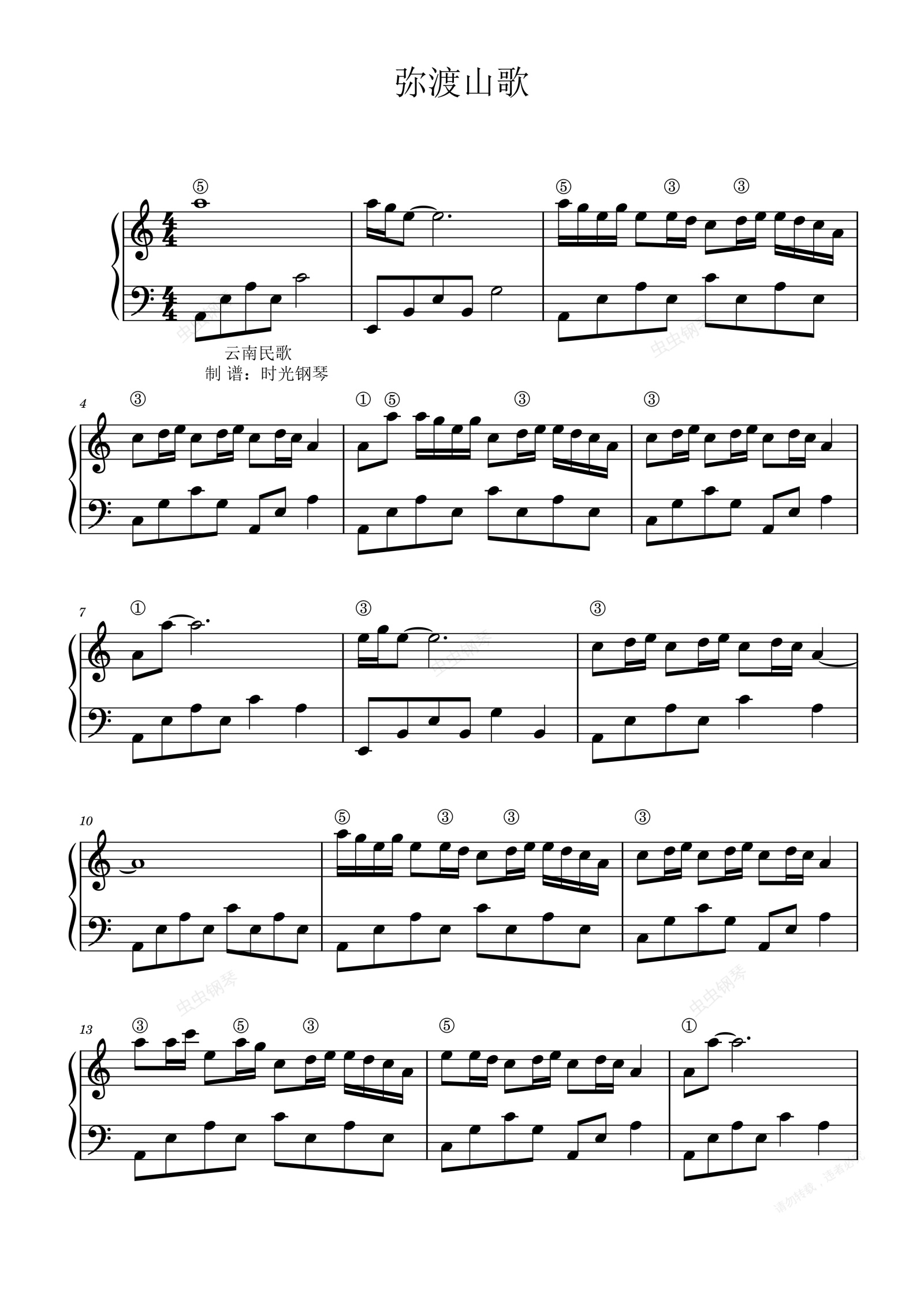 钢琴谱:弥渡山歌