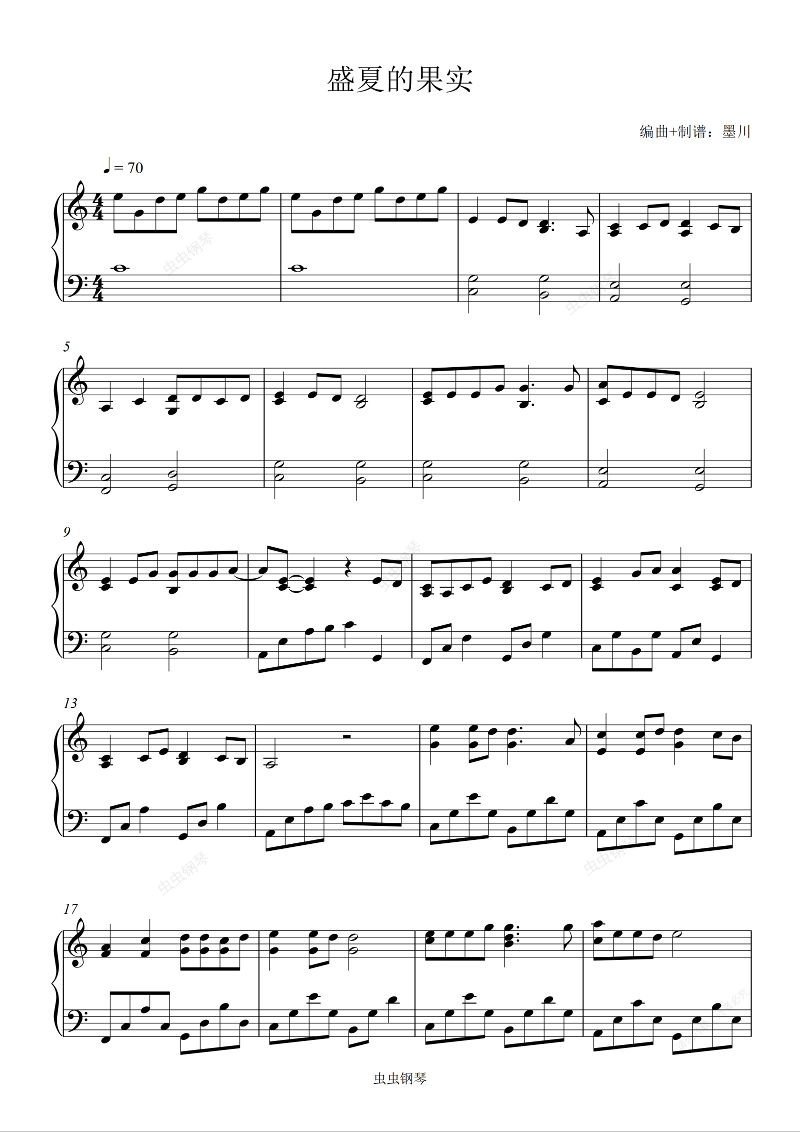 钢琴谱:盛夏的果实-莫文蔚-C调完美弹奏
