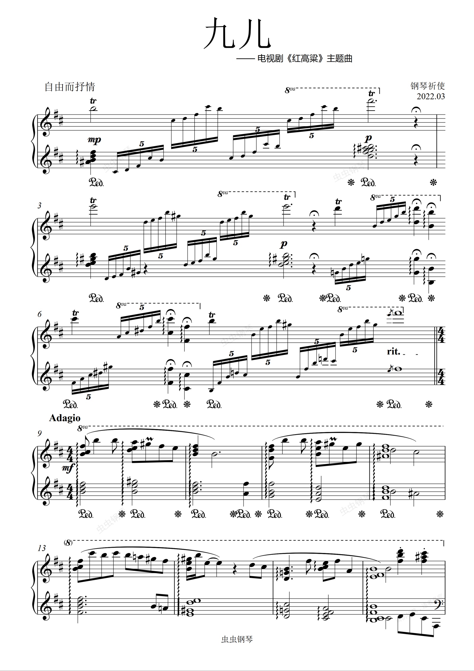 钢琴谱:《九儿》钢琴改编独奏曲