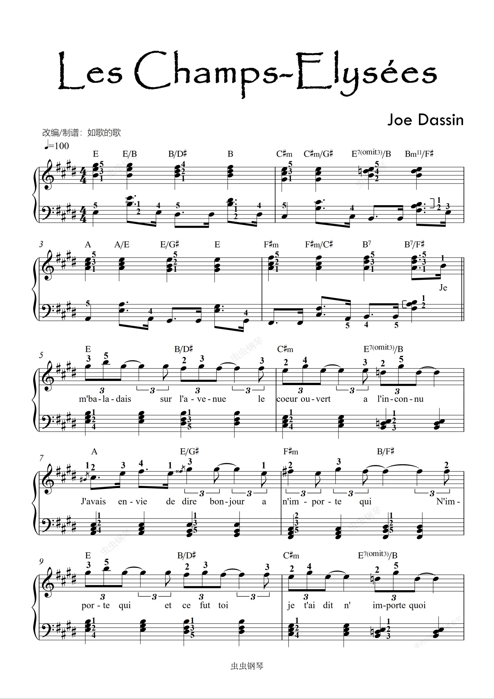 钢琴谱:Les Champs-Elysées香榭丽舍大街-法语香颂代表作原调可弹唱