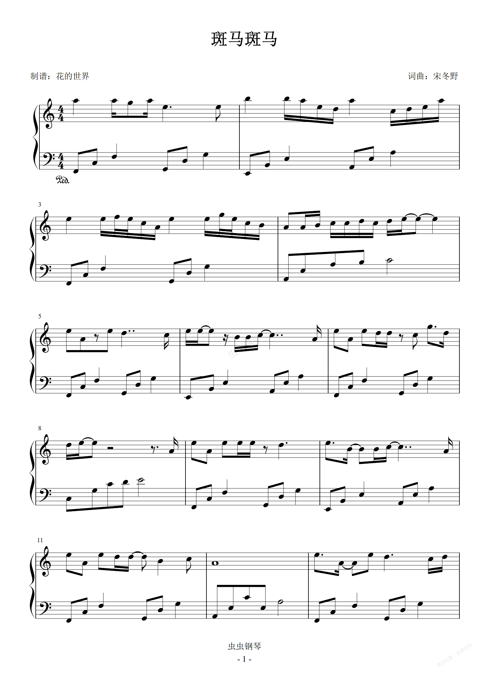 钢琴谱:斑马斑马 C调简易版 宋冬野