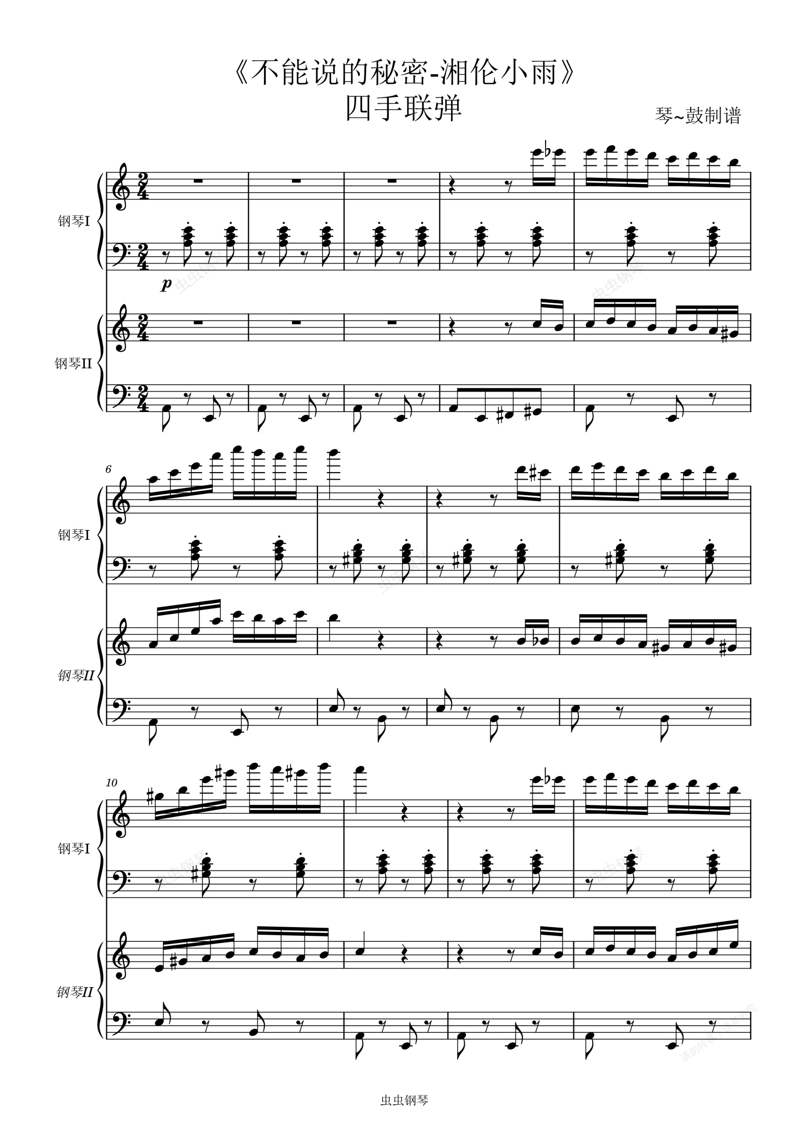 钢琴谱:琴鼓制谱C调不能说的秘密-湘伦小雨四手联弹