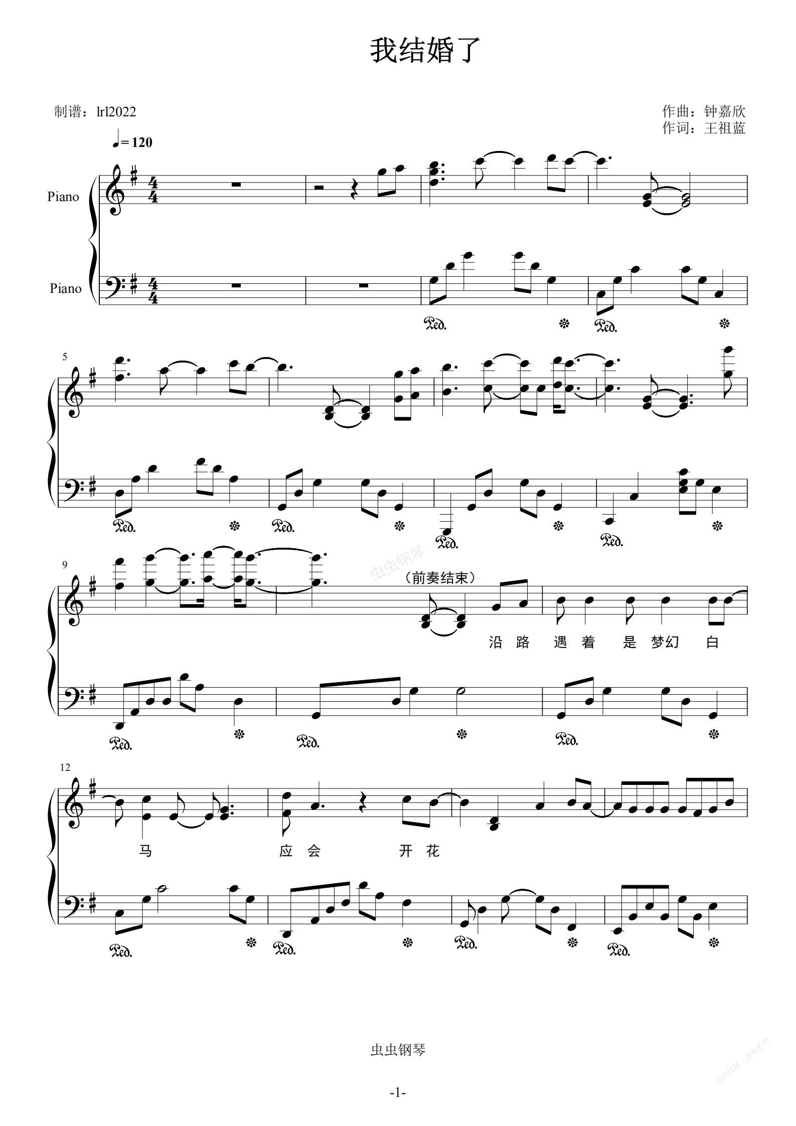 钢琴谱:我结婚了-独奏好听版-钟嘉欣-五线谱