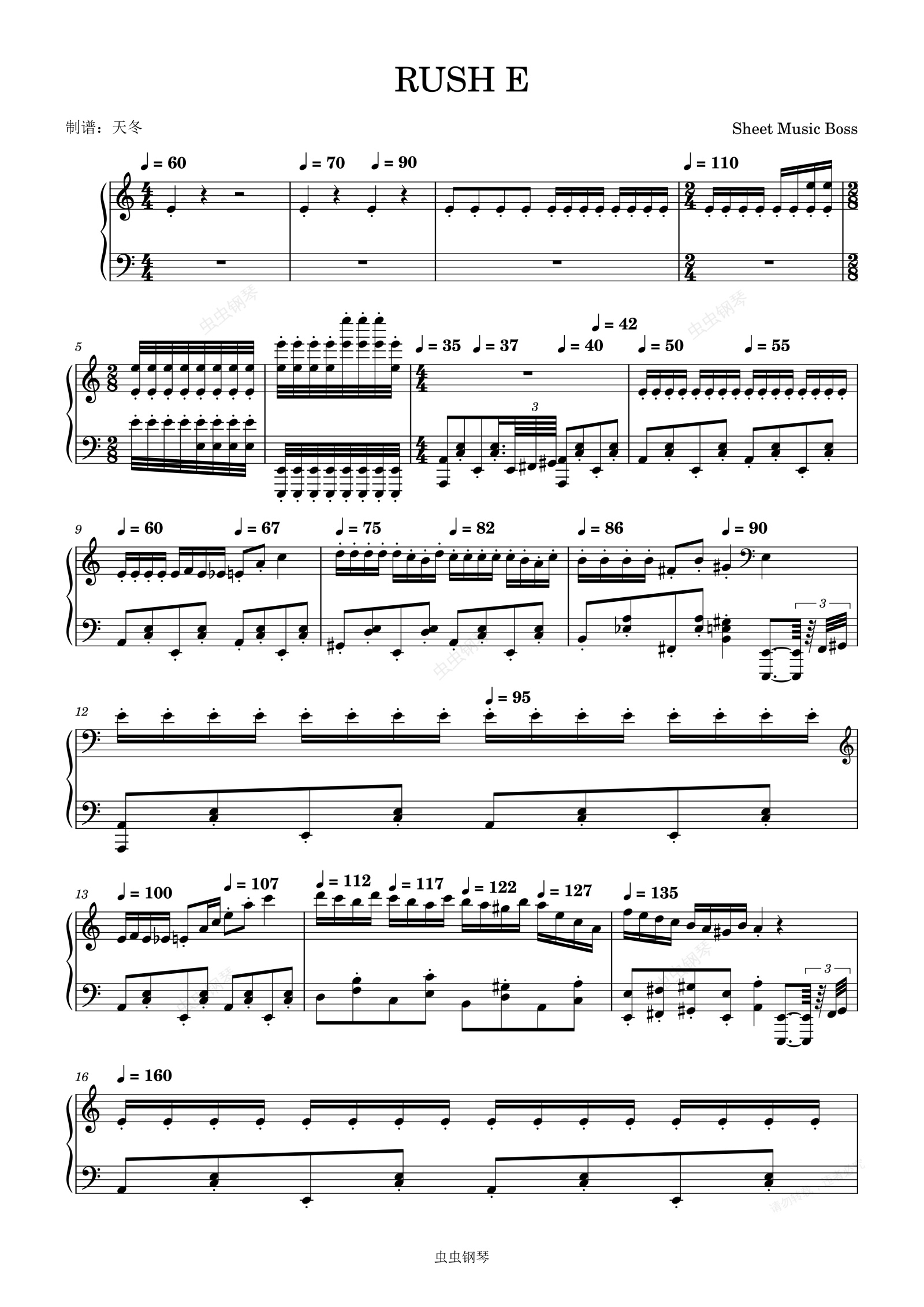 钢琴谱:RUSH E黑乐谱可弹版本简单易学