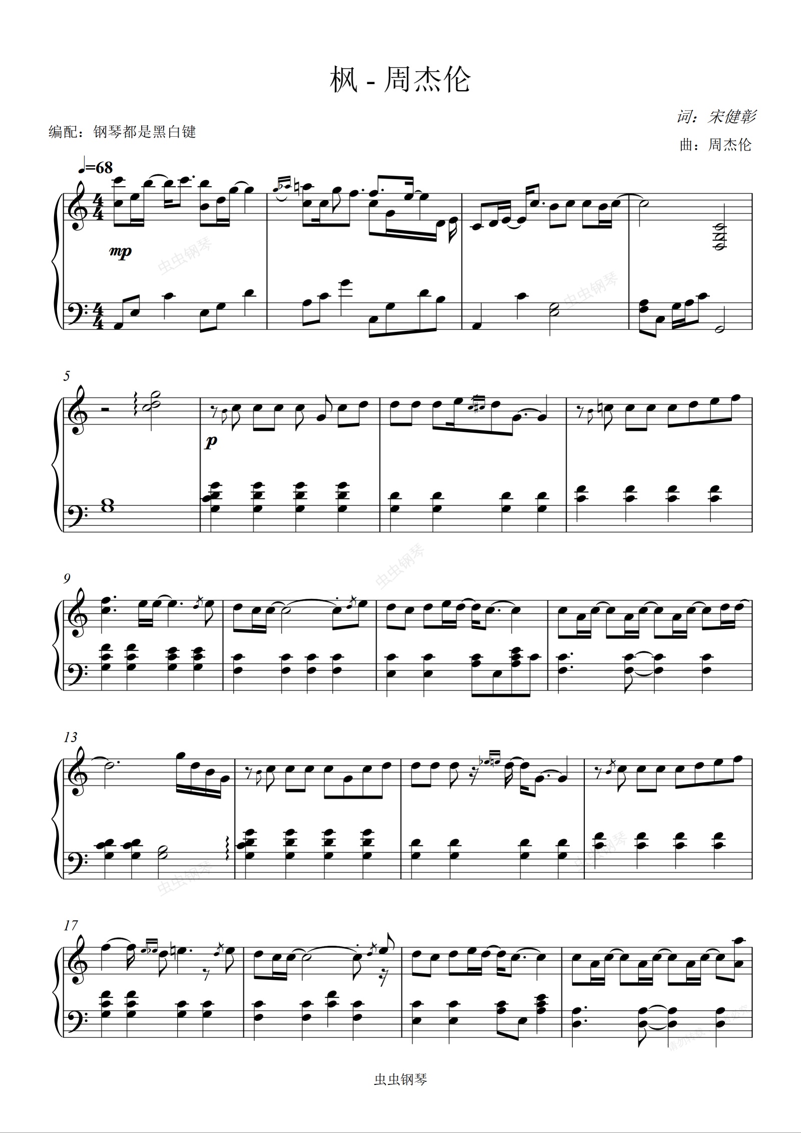 钢琴谱:枫 - 周杰伦 【高还原超好听演奏版】