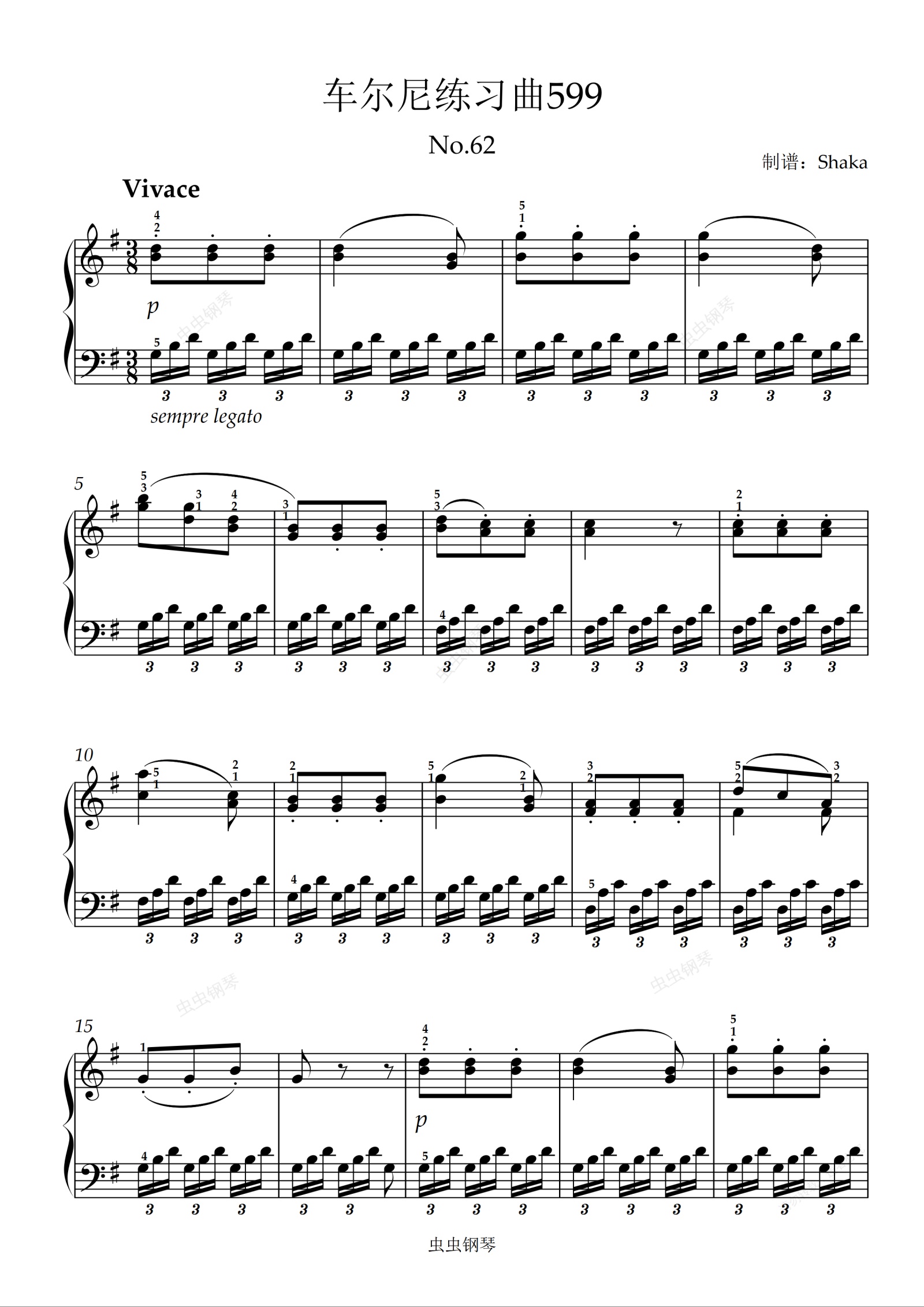 钢琴谱:车尔尼练习曲599 No.62 原版 带指法
