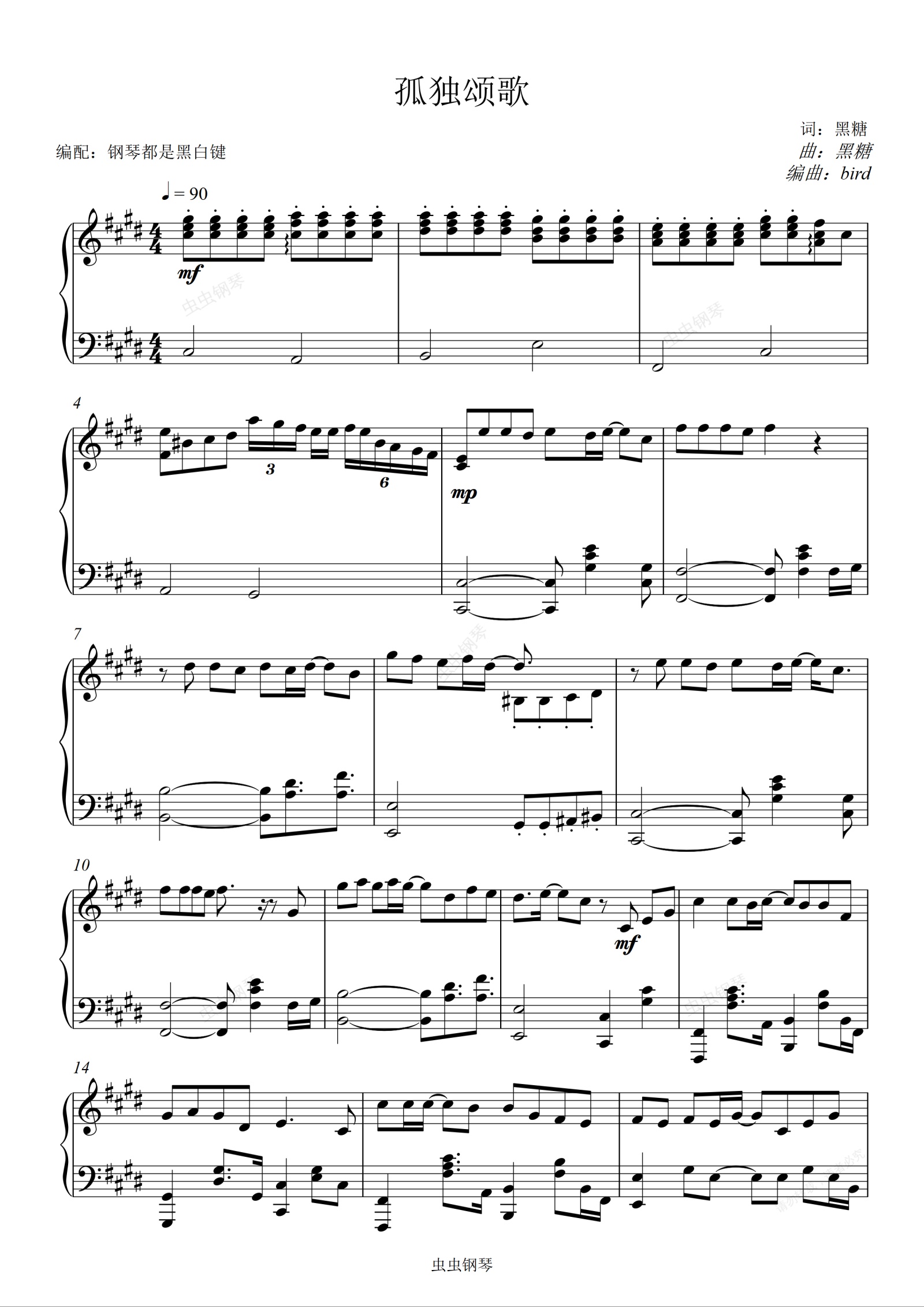 钢琴谱:孤独颂歌 - 陈文非 【高还原钢琴演奏版】