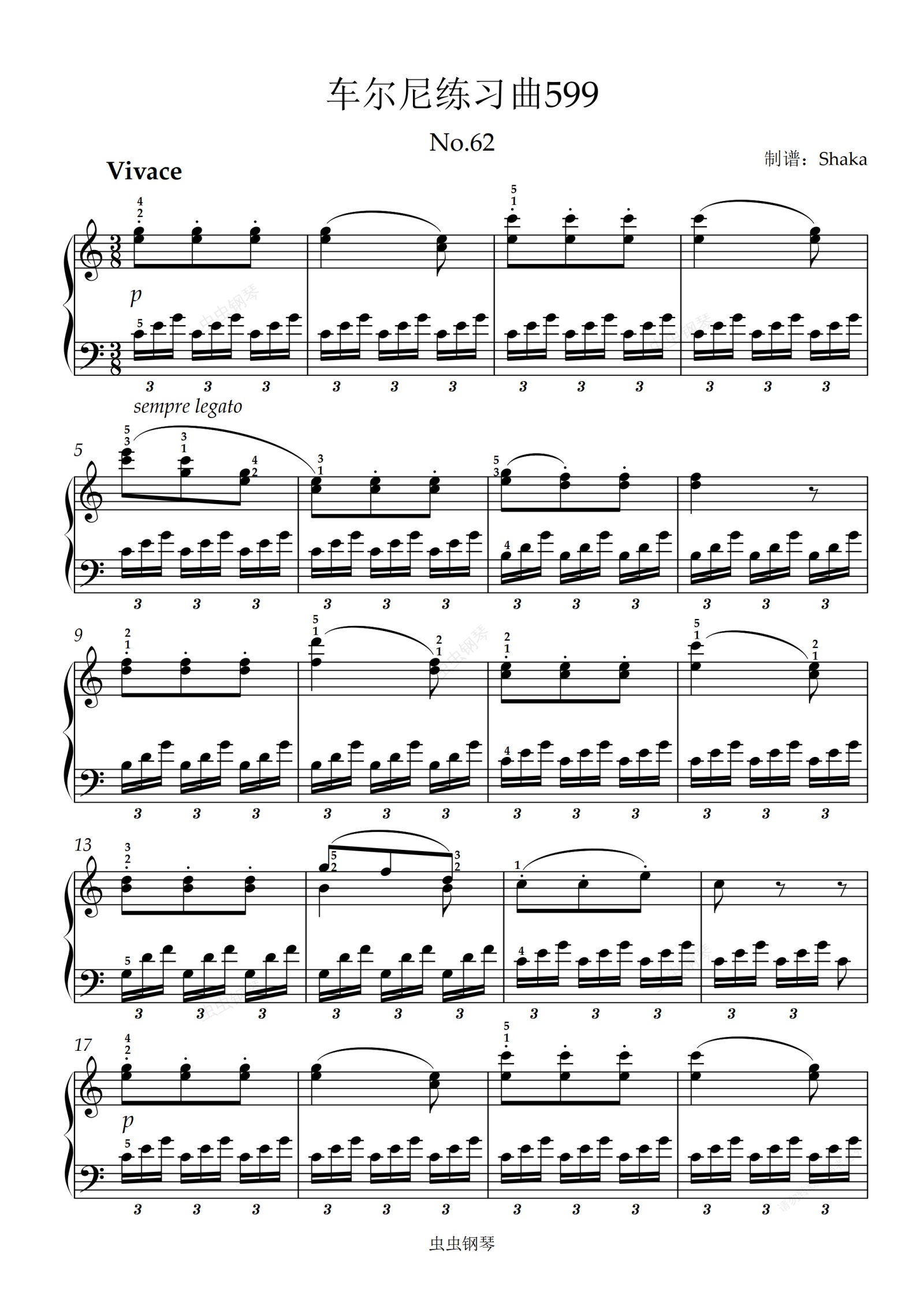 钢琴谱:车尔尼练习曲599 No.62 C调版带指法