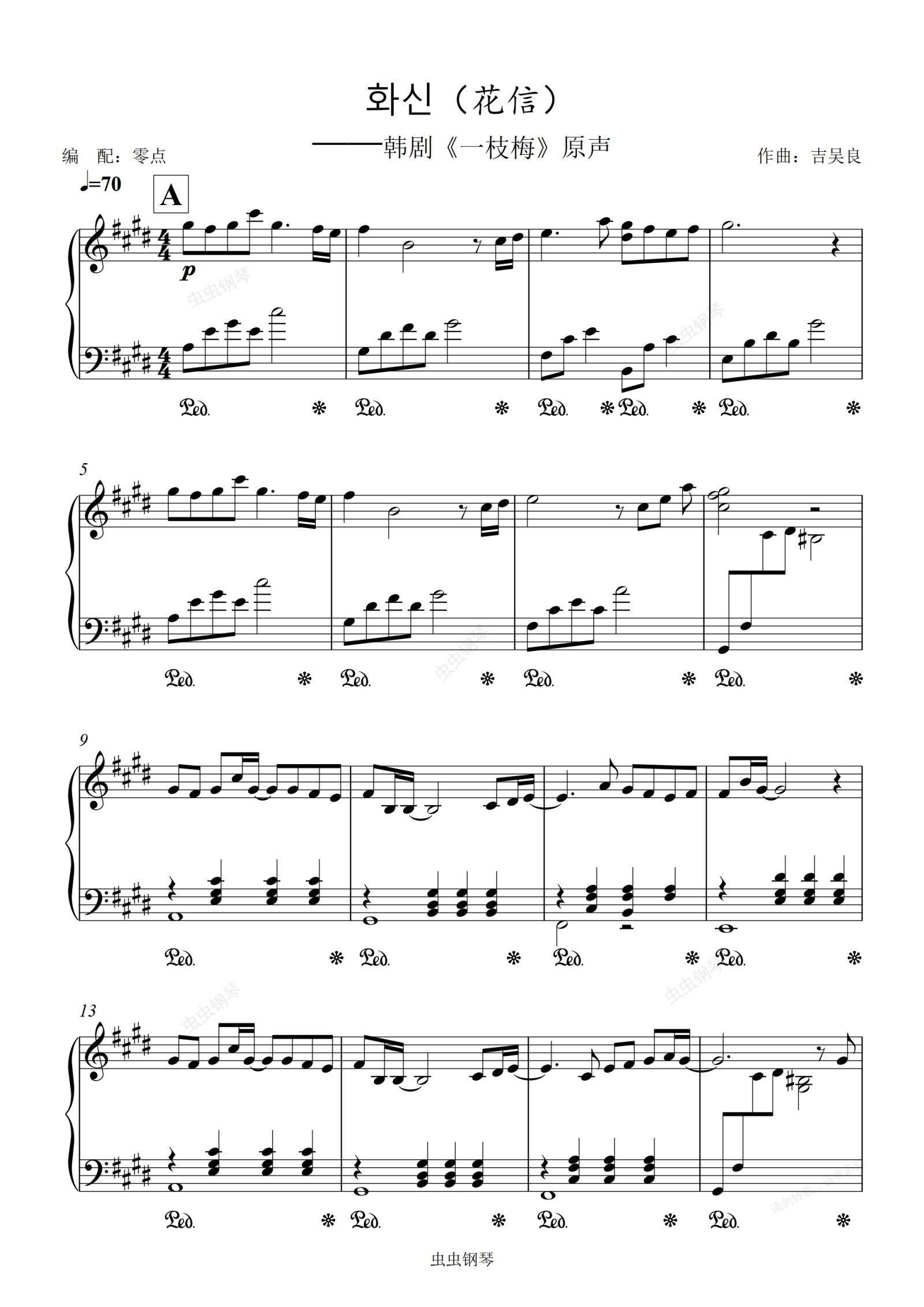 钢琴谱:화신(花信)-《一枝梅》韩剧李准基