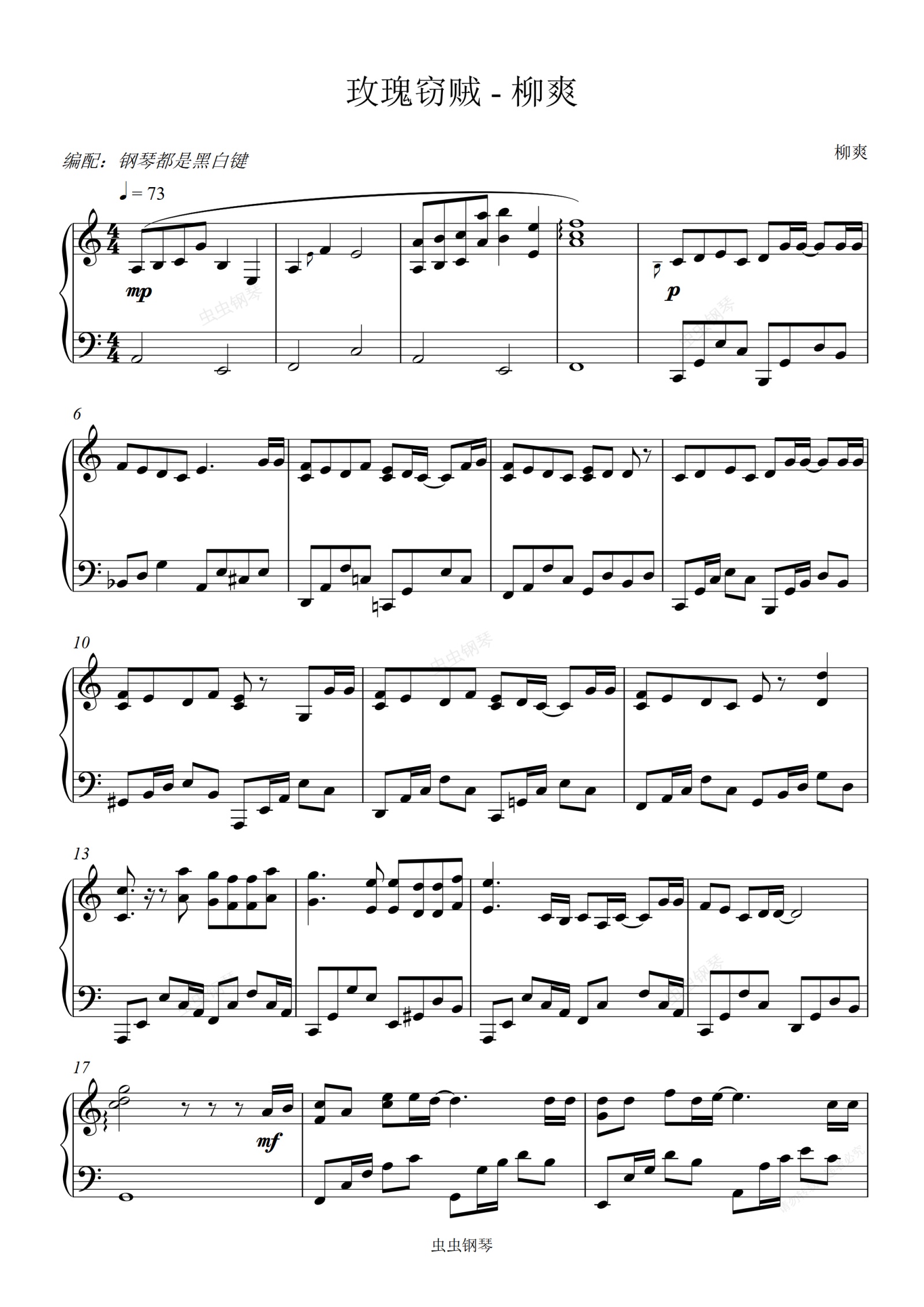 钢琴谱:玫瑰窃贼 - 柳爽 【抒情+无转调 好听易弹演奏版】