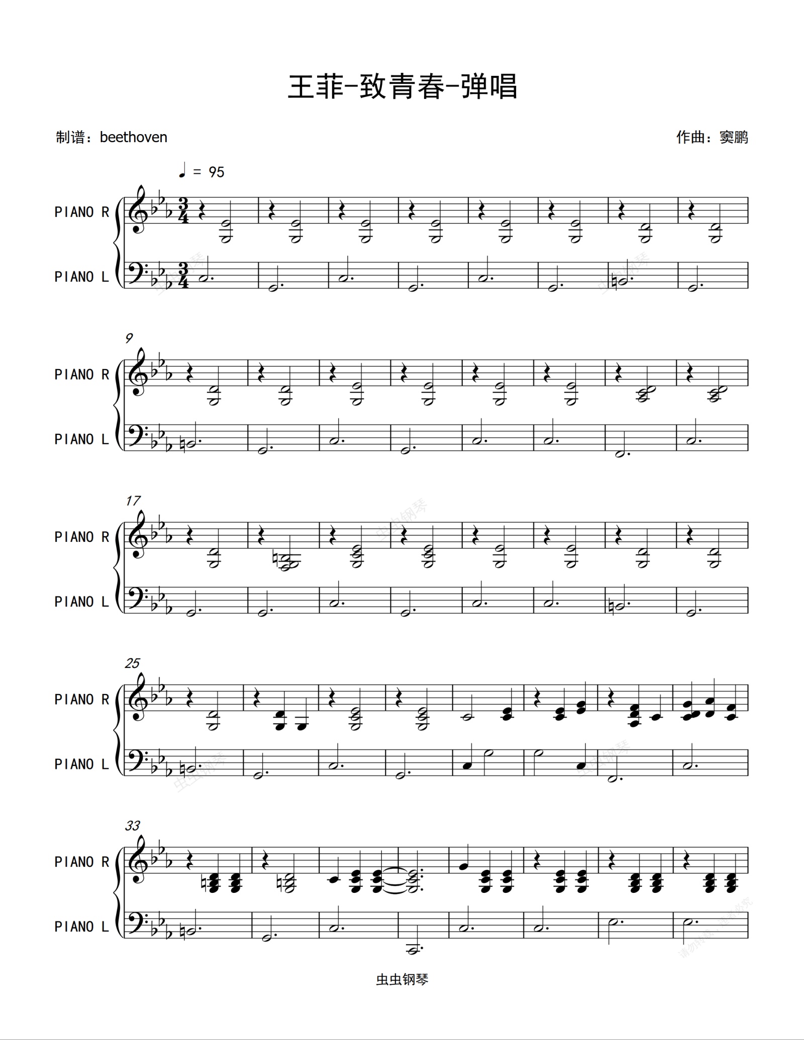 钢琴谱:致青春-王菲(钢琴弹唱)
