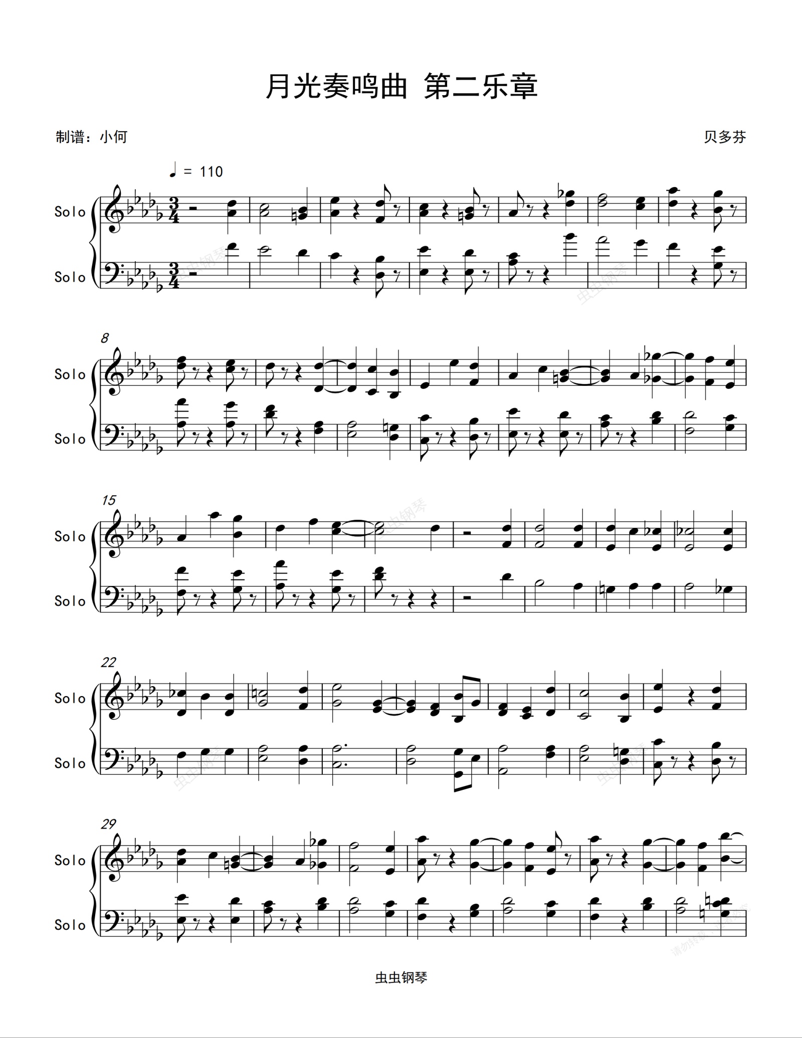 钢琴谱:月光奏鸣曲第二乐章-贝多芬