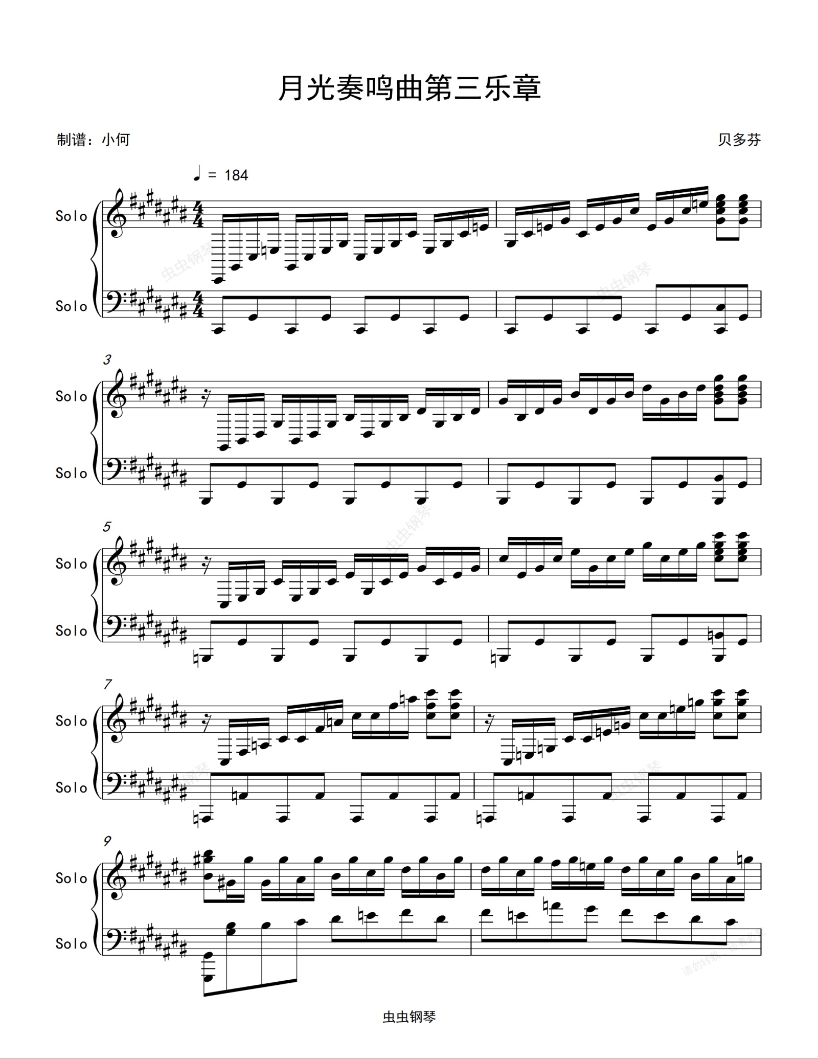 钢琴谱:月光奏鸣曲第三乐章-贝多芬
