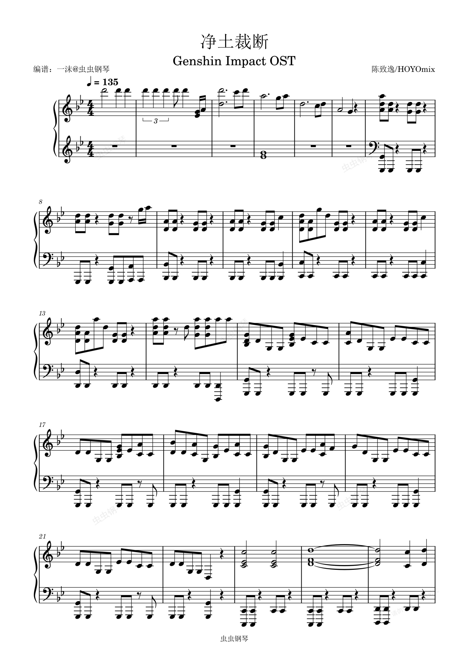 钢琴谱:原神-雷电将军:净土裁断 钢琴独奏-何妄何执
