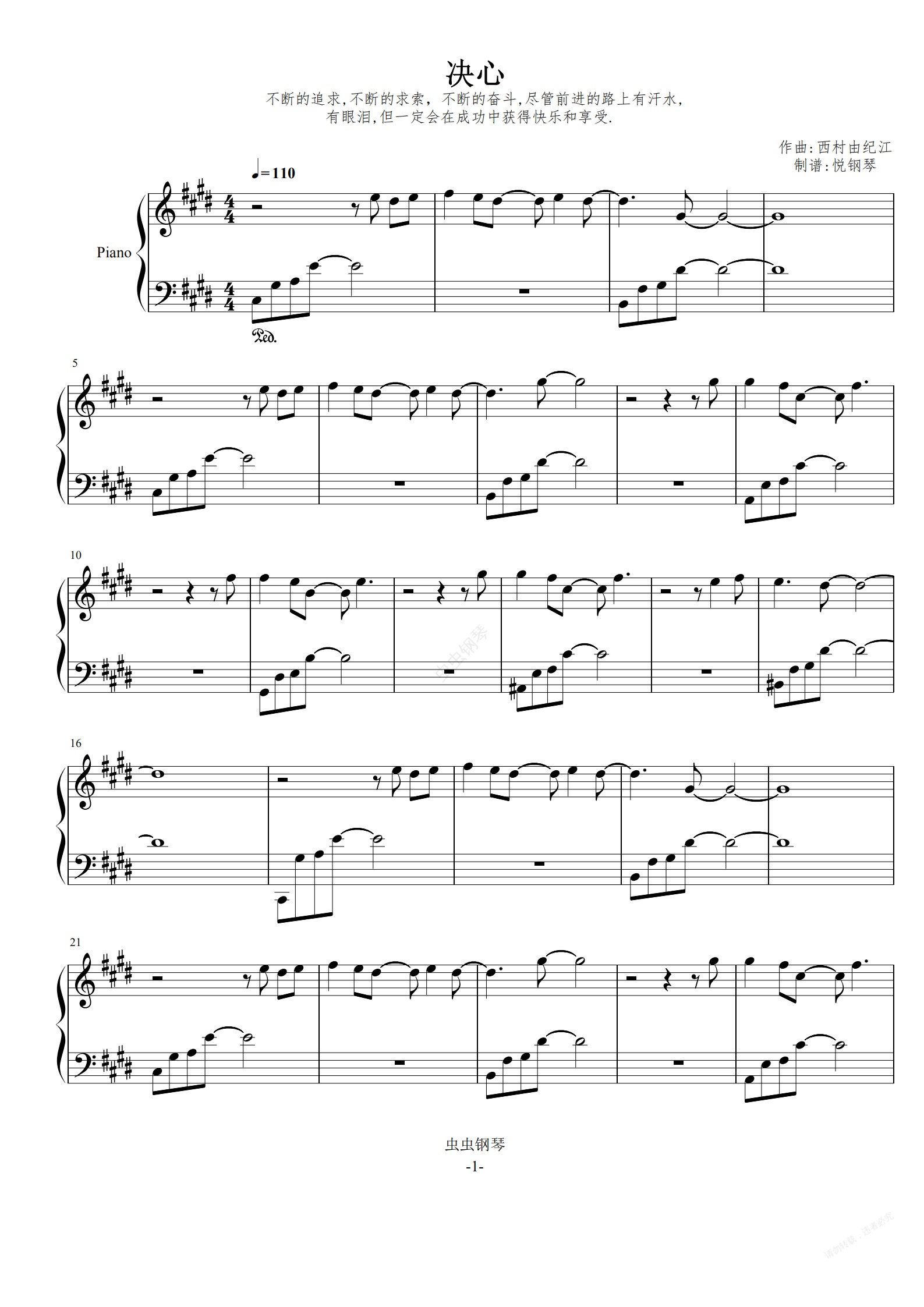 钢琴谱:决心 西村由纪江