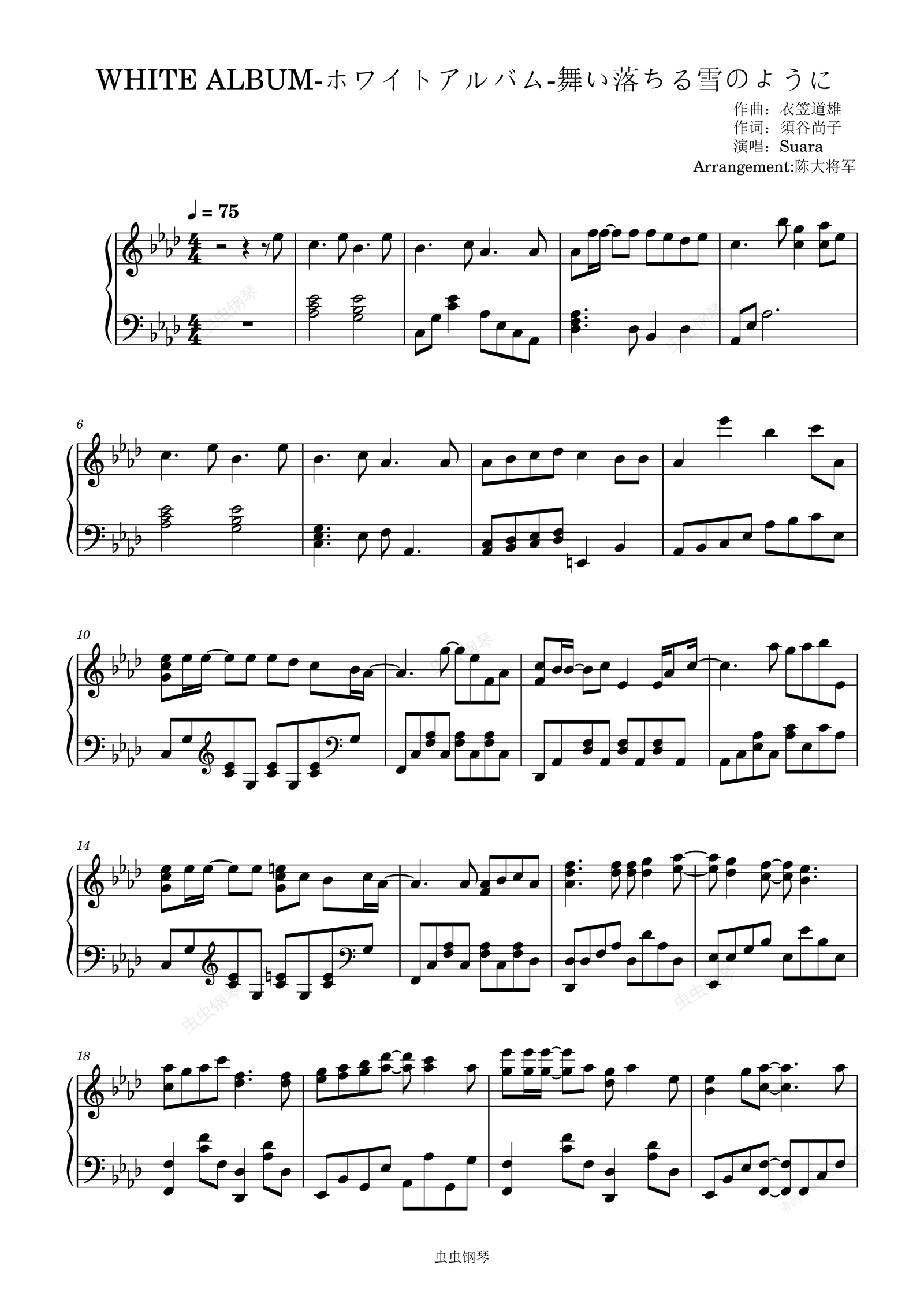 钢琴谱:WHITE ALBUM-ホワイトアルバム-舞い落ちる雪のように