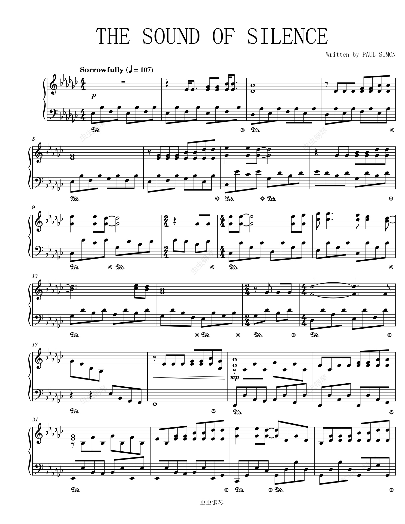 钢琴谱:THE SOUND OF SILENCE-Simon & Garfunkel