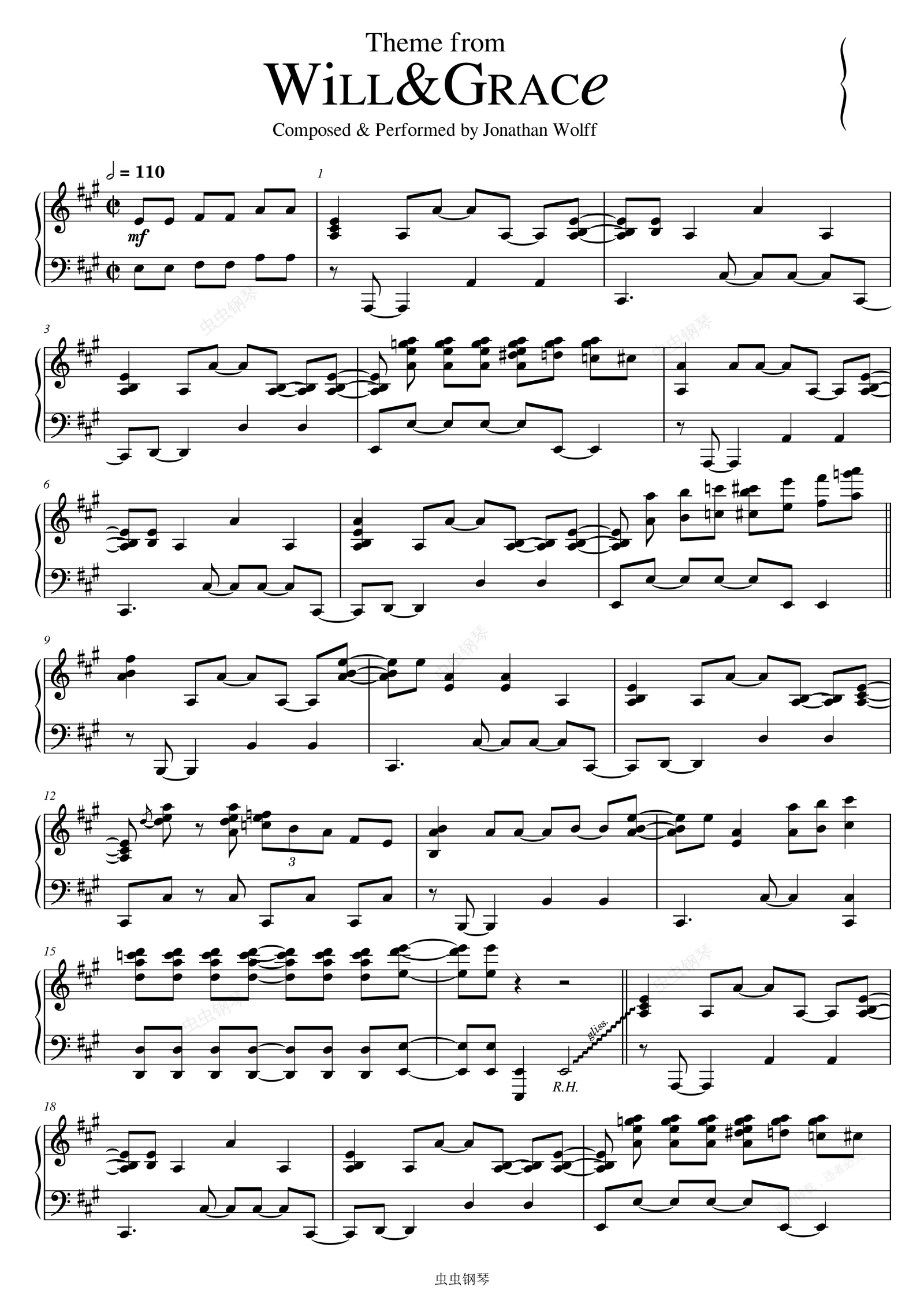 钢琴谱:Will&Grace-Jonathan Wolff
