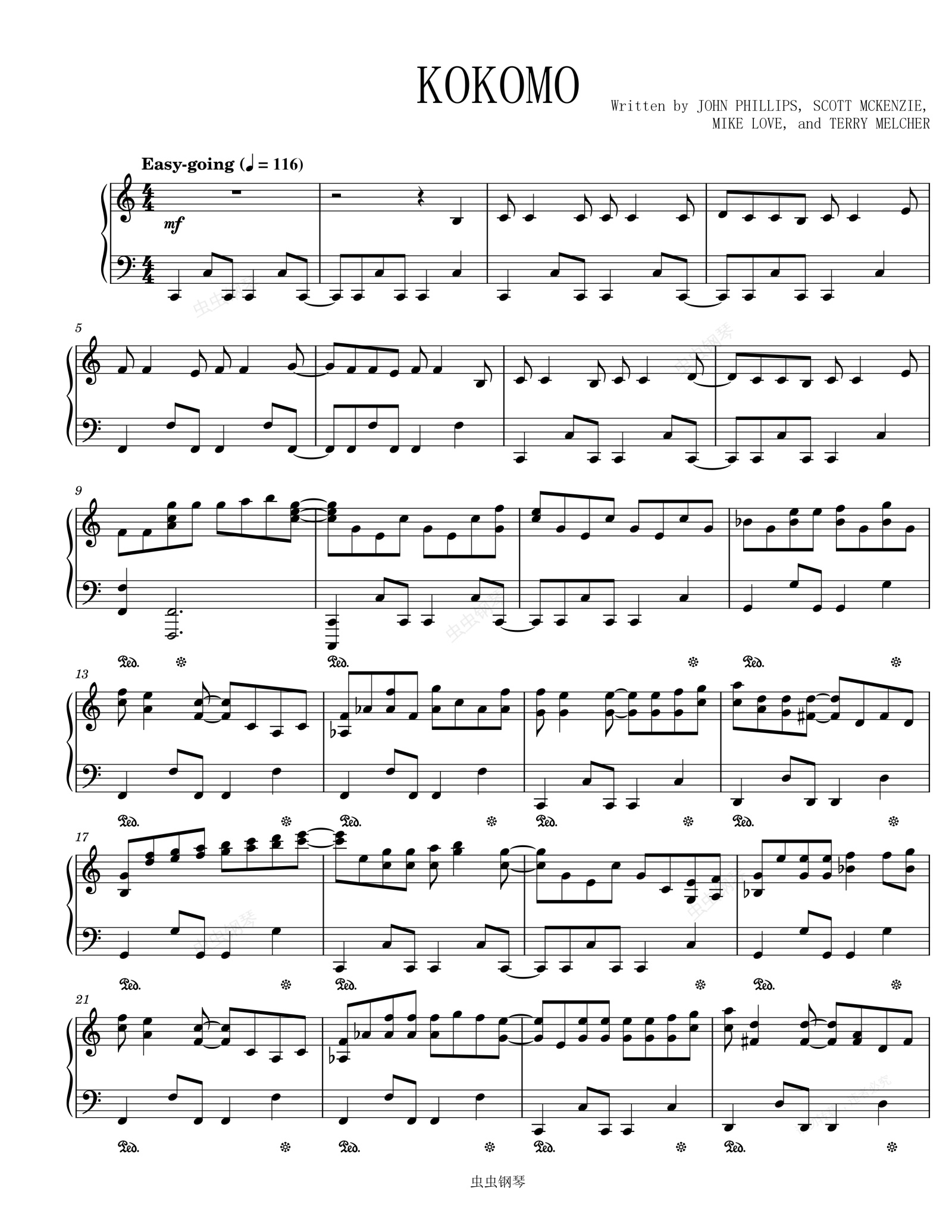 钢琴谱:KOKOMO- The Beach Boys