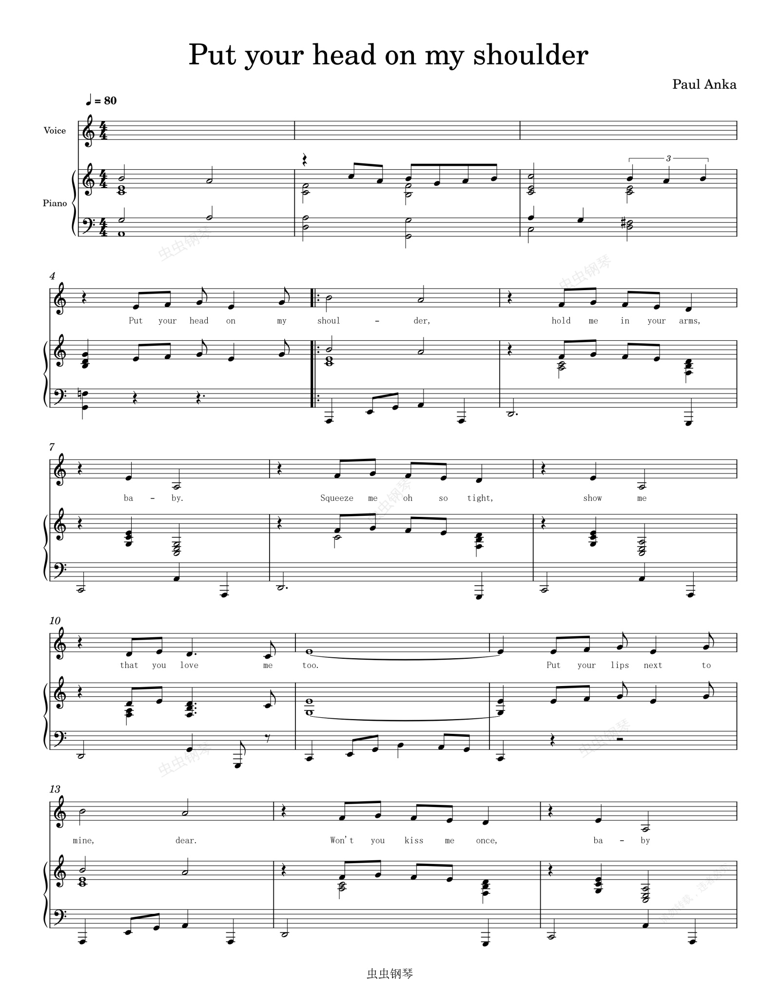 钢琴谱:Put your head on my shoulder-Paul Anka