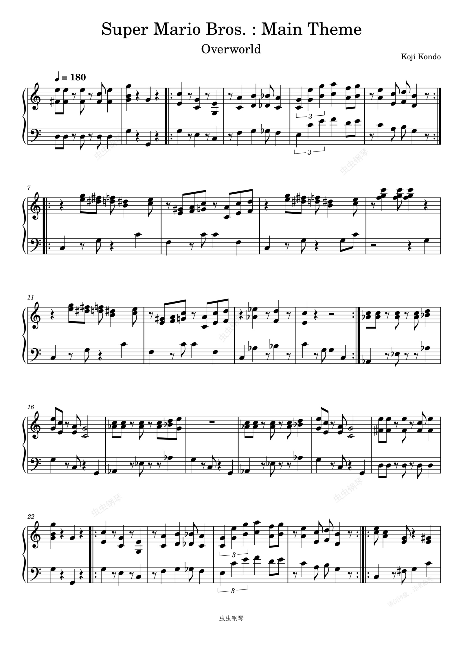 钢琴谱:Super Mario Bros-Main Theme 地上BGM